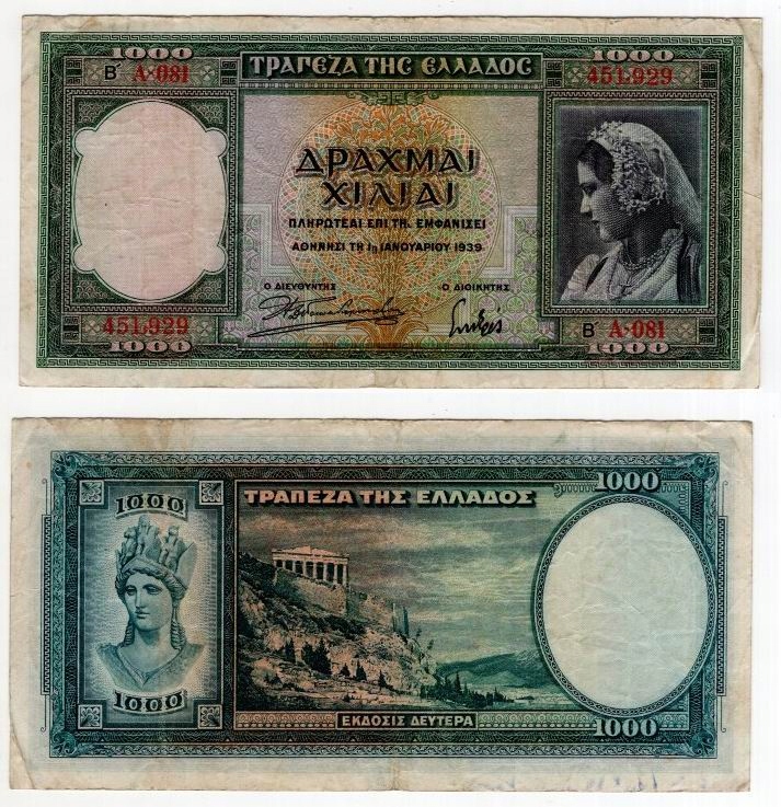 Оплачивая «Греция 1939 1000 Драхмай» данный товар из каталога «Греция» вы можете быть уверены, что после оформления заказа, доставки в Украину, вы получите именно то, что заказывали, в оговоренные сроки и европейского качества.