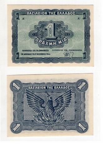 ГРЕЦИЯ 1944 1 ДРАХМА