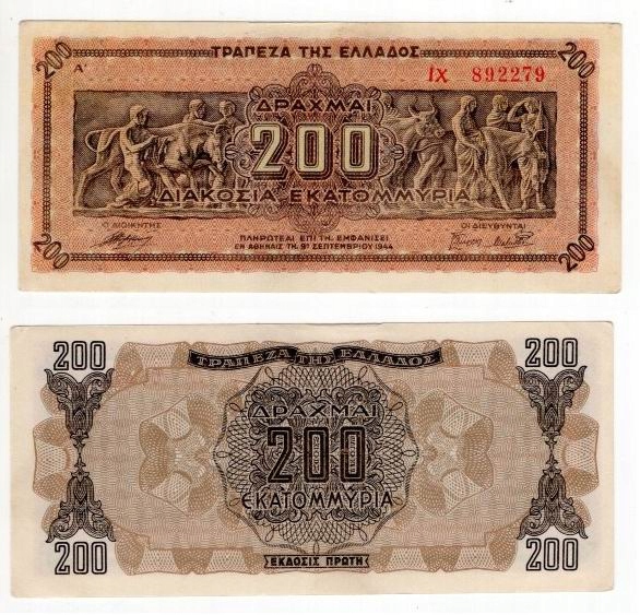 ГРЕЦИЯ 1944 200000000 ДРАХМЫ