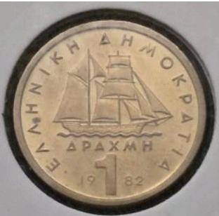 *GRECJA [0539] *1 drachma 1982 Trzecia Republika Grecka Marynistyka Statek