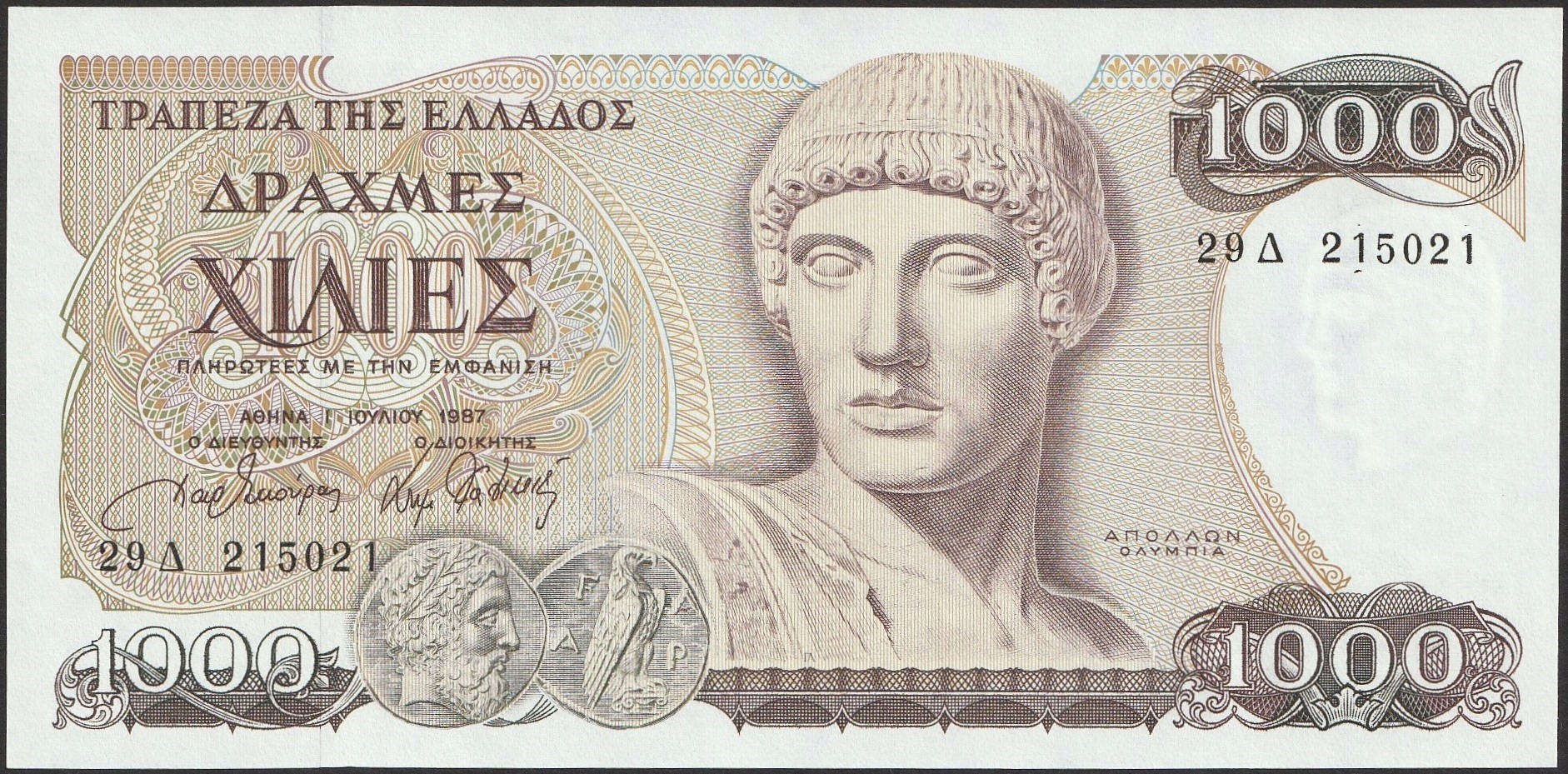 Grecja 1000 drachm 1987 - 29D - stan 2+