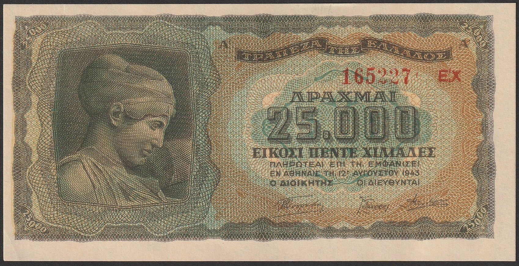 Grecja 25000 drachm 1943 - stan bankowy UNC -