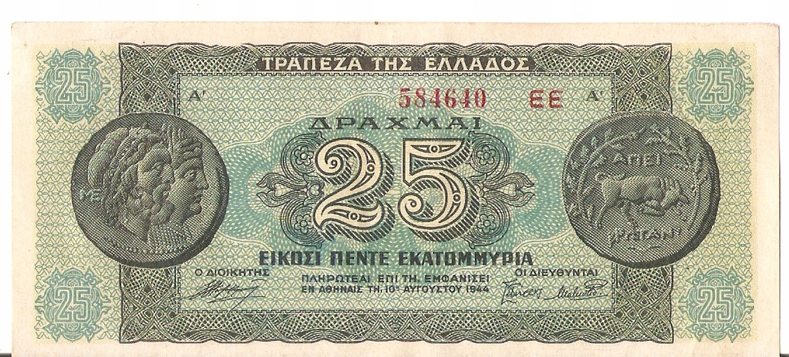 Grecja 25000000 Drachm 1944 Jerzy II Okupacja państw Osi 1941-1944