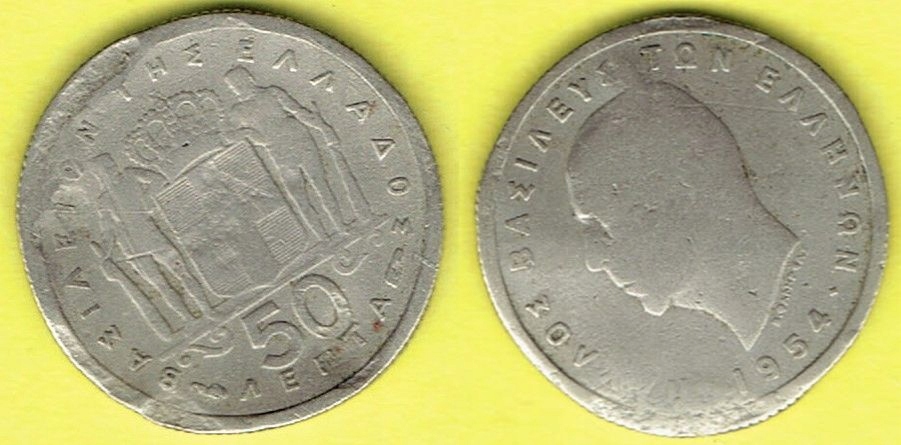 GRECJA 50 Lepta 1954 r. uszk.