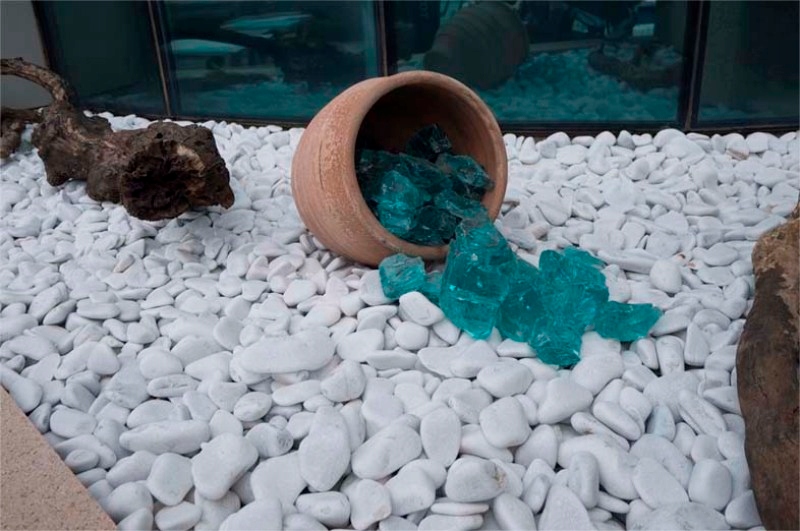 Белоснежная тасосская галька — белый природный камень с переливающимися на солнце частичками.