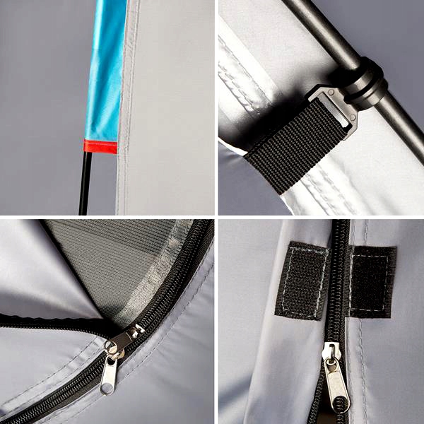 Палатка оснащена двумя внутренними карманами, в которых можно спрятать полезные предметы, и ручкой под потолком, благодаря которой можно повесить лампу.