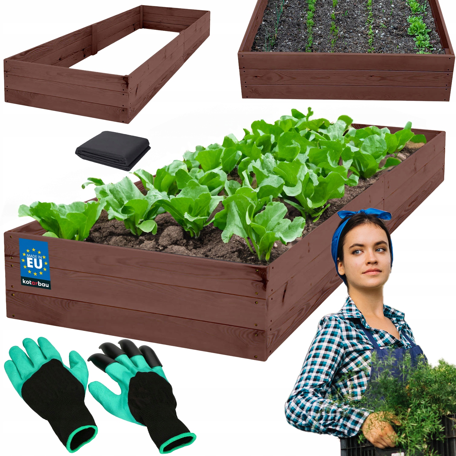 GREEN GROUP ТРАВЯНАЯ ГРУБКА КРОВАТЬ 240x80x27 см ДЕРЕВЯННАЯ САДОВАЯ ЯЩИКА + ПЕРЧАТКИ ДЛЯ КОГТЕЙ
