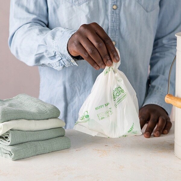 Да, все отходы можно помещать в мешки Greenaware. Однако такая сумка не может достичь био -отходов или компостирования, поскольку содержание не является компостируемым.