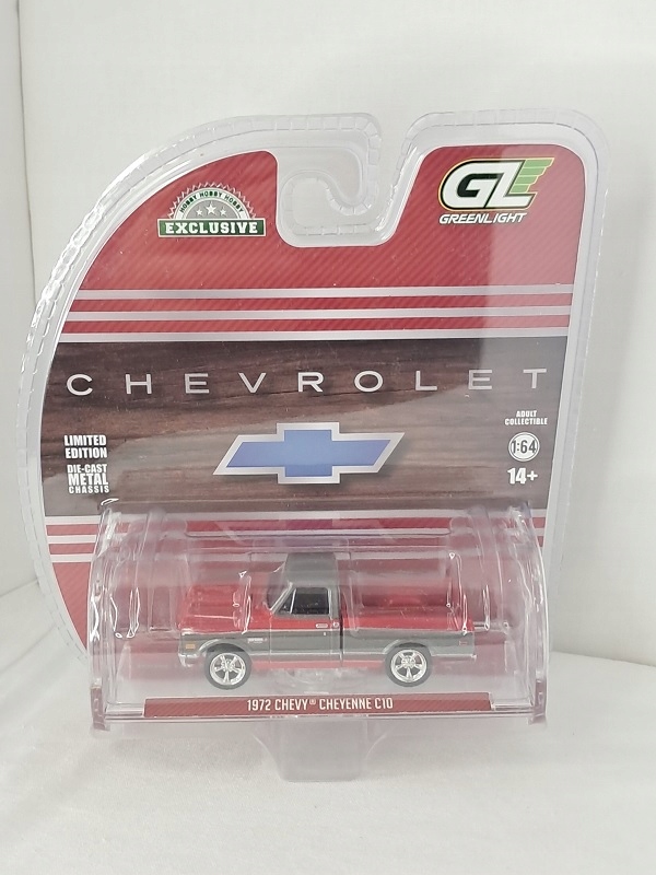 Chevrolet Cheyenne C10 Short Bed 1972 года, рубиново-красный, модель Greenlight, масштаб 1:64, серия Hobby Exclusive, 30547. Новинка
