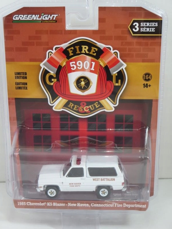 Модель Chevrolet K5 Blazer 1985 New Haven FD от Greenlight в масштабе 1:64, серия Fire & Rescue 3. Новинка