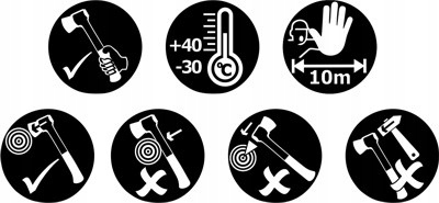Современный Ciesal Siekier для требования пользователей с легкой ручкой. Лезвие позволяет в основном обработать древесину и его случайное расщепление. Легкая пустая ручка идеально сбалансирована: центр тяжести находится близко к лезвию, что делает работу менее утомительной, чем у традиционных оси с деревянными, металлическими или пластиковыми стеблями. Лезвие изготовлен методом передачи стали C55, полированной, а затем предварительно закрепленным и покрытым серо -эмпгументом. Клинок имеет специальное ребро, которое защищает осколки от доступа к лезвию с помощью ручки в городе. Специальная смесь пластика: нейлон с стекловолокном обеспечивает прочность ручки. Конец вала покрыт мягким не -скольжением (TPR). Шкала лезвия: 410 г. Цель: столовые работы, снятие боковых ветвей, садовые работы. Это позволяет легко хранить инструмент благодаря широкой ручке подвески. Крышка защищает и защищает лезвие во время хранения. Защитная защелка облегчает вставку и удаление топора. Перед нанесением крышки для хранения рекомендуется смазывать лезвие с помощью машинного масла. На ручке топора есть наклейка с предупреждениями, полезными во время работы. Инструкции по изображению для использования размещены на карте. Никогда не ручка. Во время работы лезвие не может быть в контакте с жесткими объектами: камни, металл и т. Д. Погрешность вместо дерева в жесткую поверхность может закончиться постоянным повреждением лезвия. для вождения. Не используйте топор, как молоток, чтобы водить объекты P> Держите расстояние от людей, по крайней мере, 10 м. Необходимый от детей