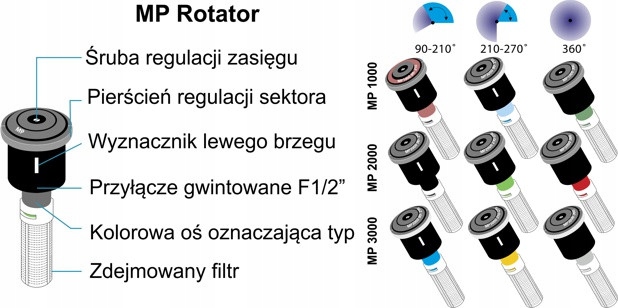 MP Rotator — инновационный, многофункциональный -струйный, роторный ороситель, характеризующийся очень равномерным покрытием распыляемой поверхности и небольшим количеством осадков.