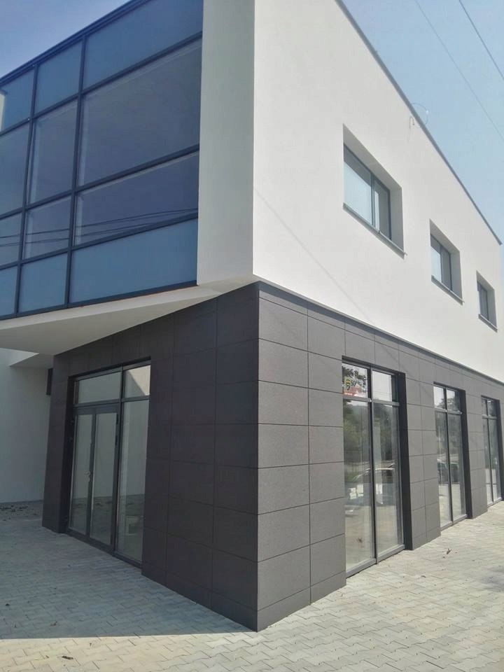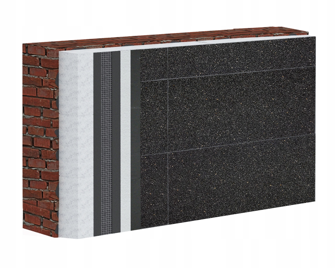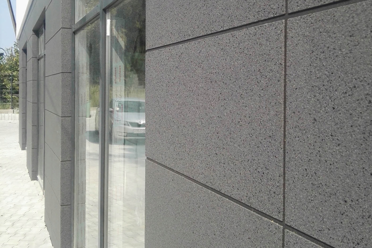 Акриловая облицовка фасада Greinplast OEA KG состоит из панелей, имитирующих внешний вид гранитных плит.