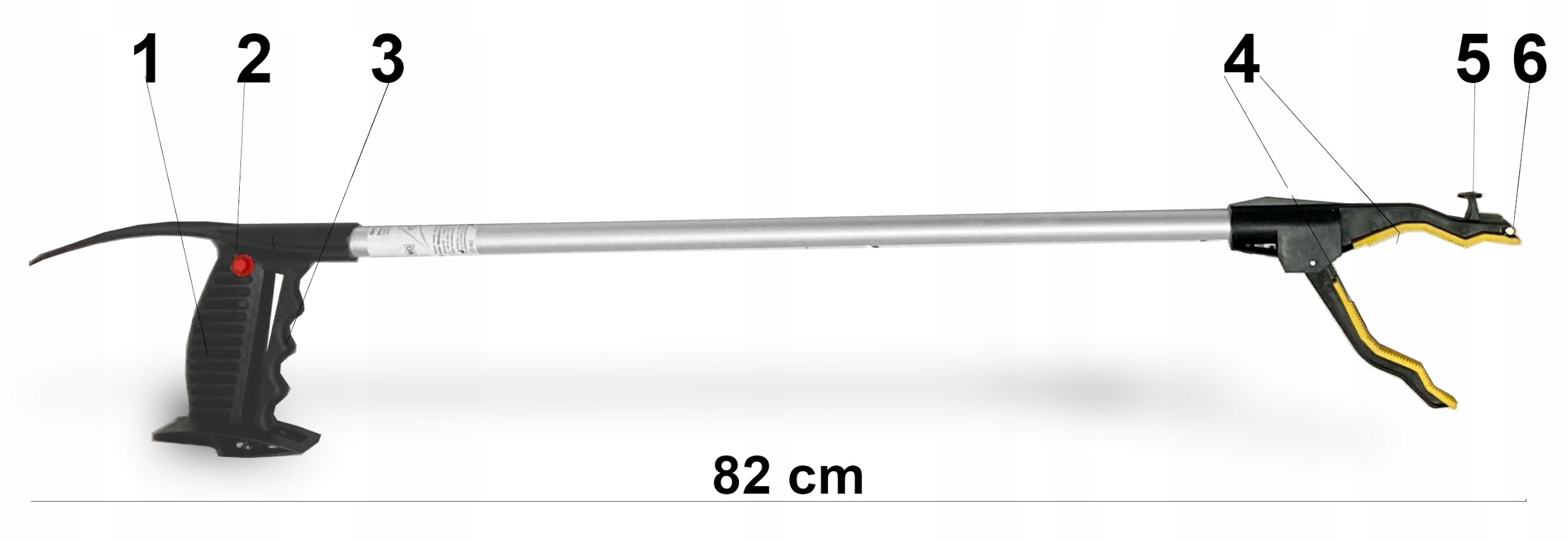 Так называемый захват. Рука помощи для подъема предметов изготовлена из прочного пластика и алюминия. Кроме того, он имеет профилированную рукоятку, повышающую удобство использования устройства.