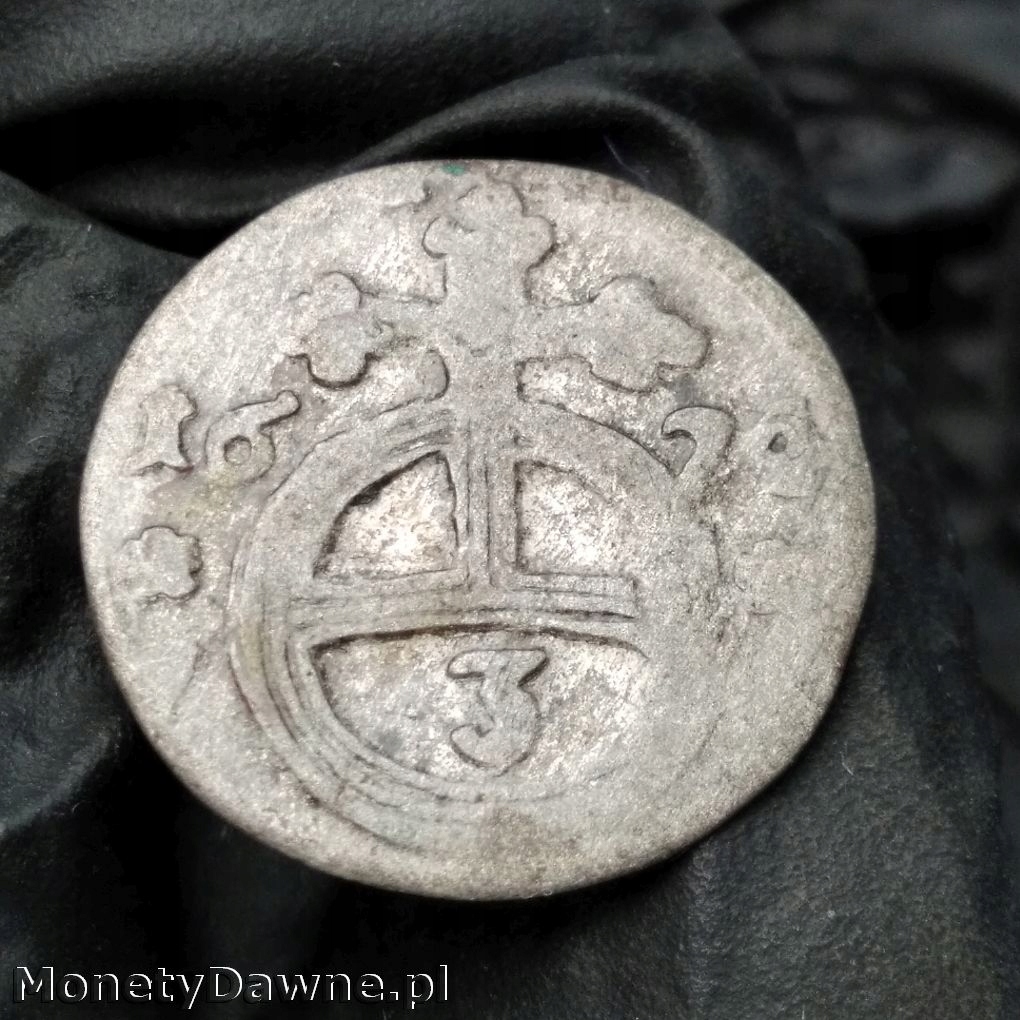Ferdynand II, Greser (3 Pfennigs) 1624, Nysa; Циркулированная копия редких выбросов с розетками по бокам Королевского яблока, приписываемой монетному монету в Нисах; Патин.