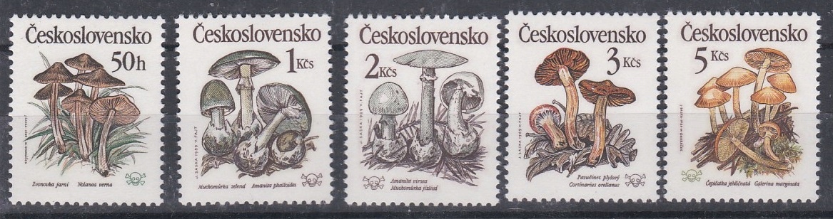 ГРИБИ ФЛОРА ЧЕХОСЛОВАЧЧИНА - поштові марки, набір.
