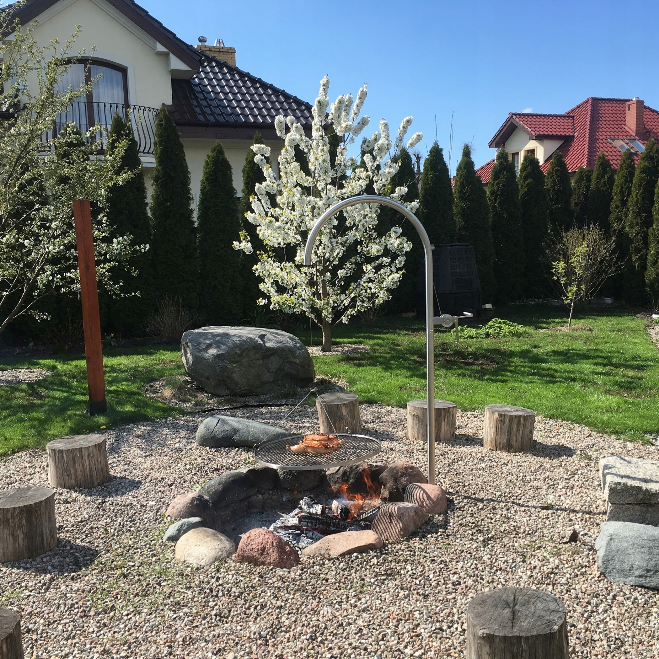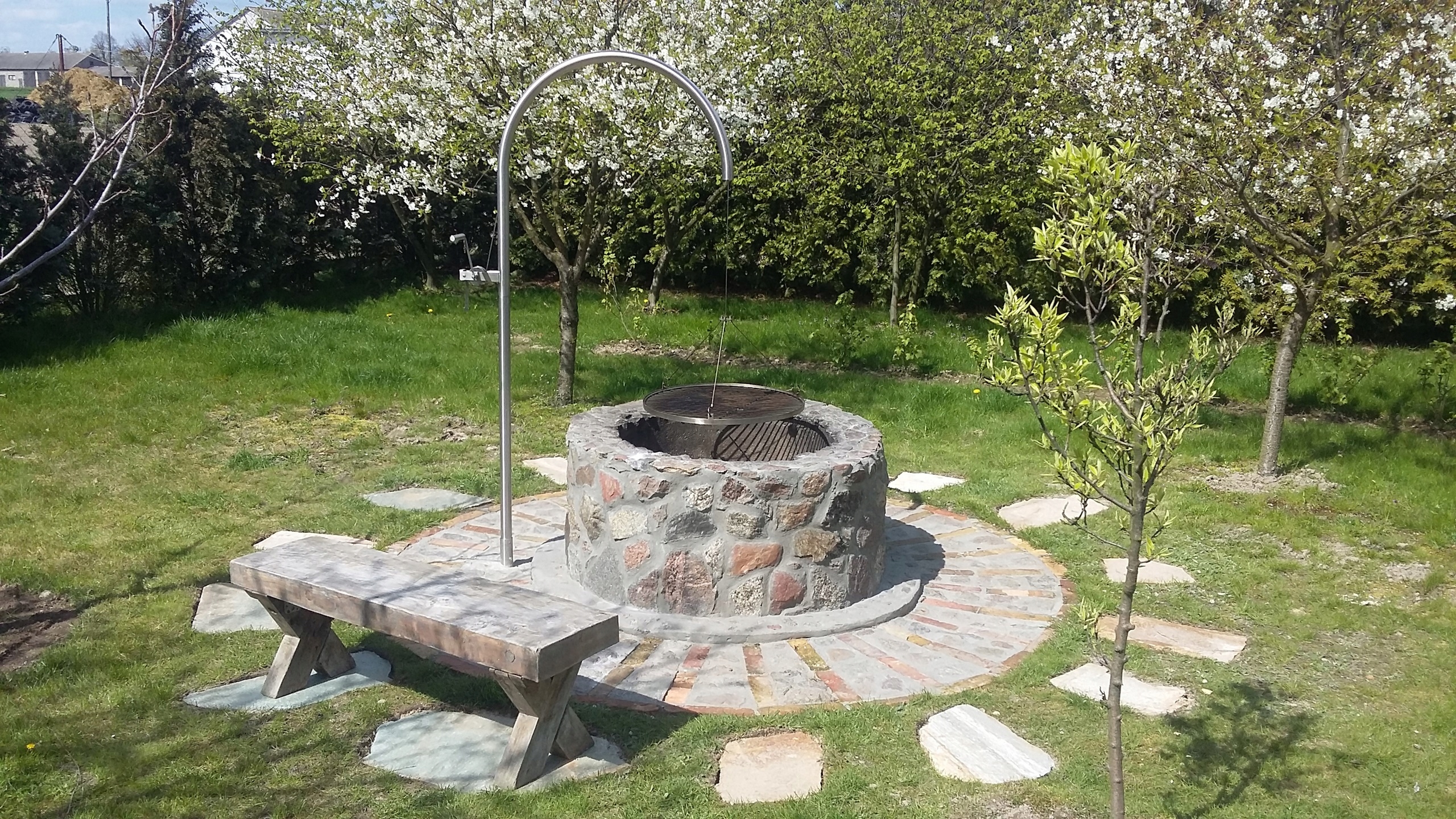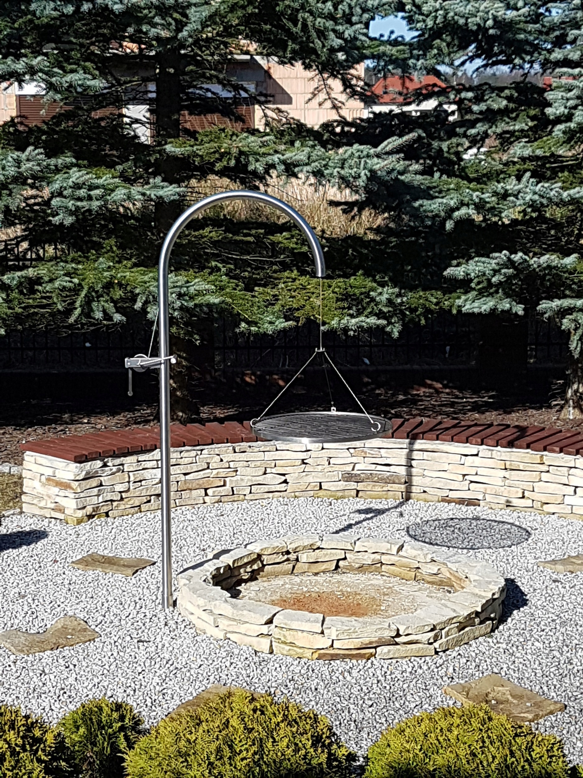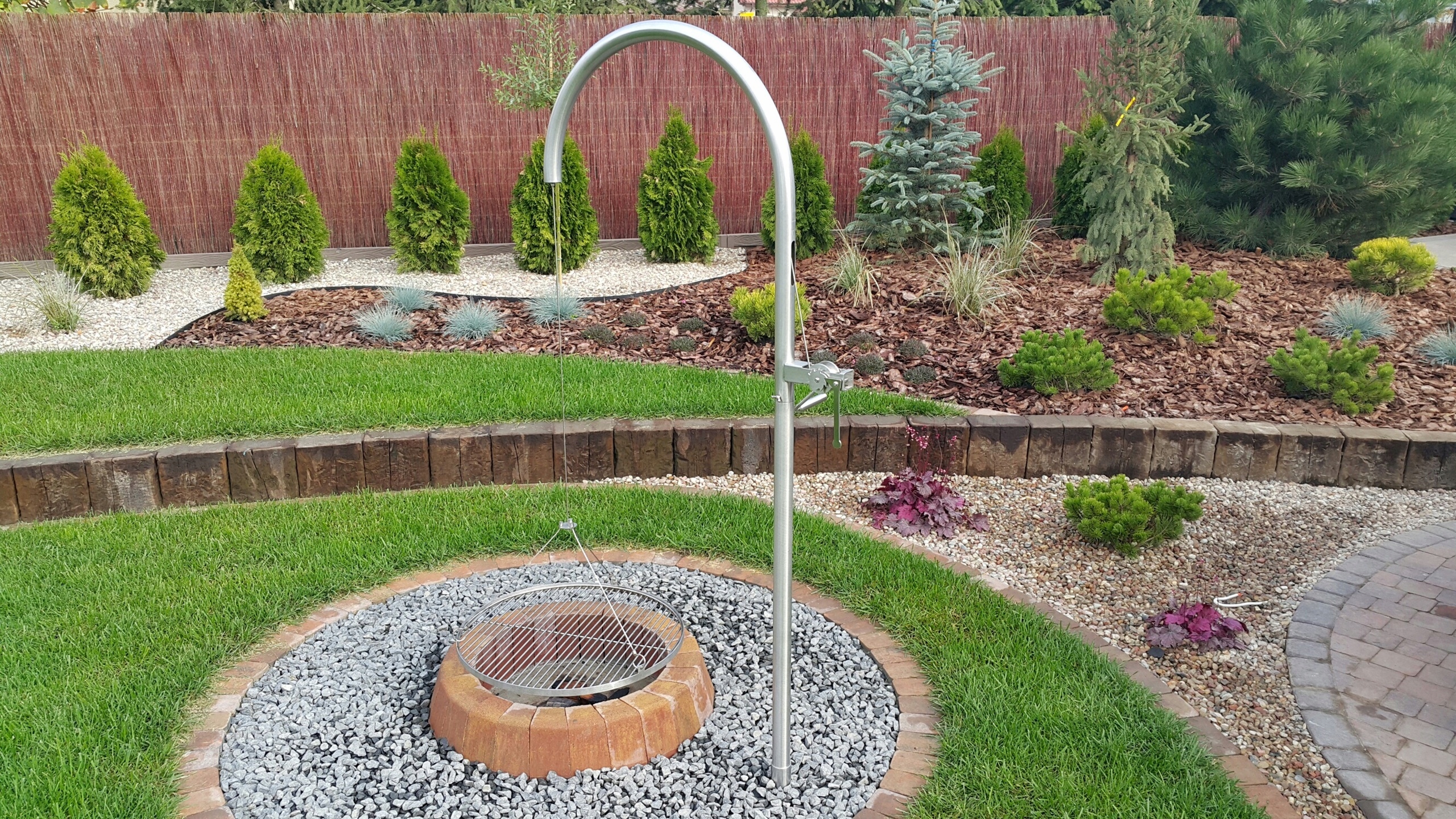 - Дуга оголовка изогнута на размер 68см от оси решетки до оси трубы. Однако мы также можем согнуть его до диаметра по желанию заказчика – от 60см до 85см. На цену гриля это не влияет.