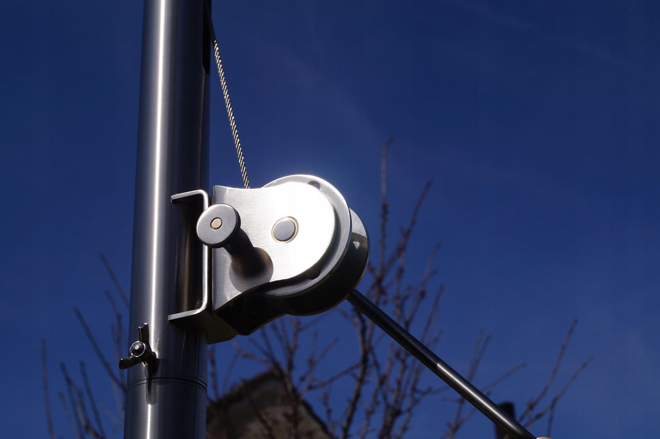 Решетка подвешивается на тросах из нержавеющей стали диаметром 3 мм. Для соединения линий мы создали уникальное решение, которое не только отлично работает, но и очень эстетично по сравнению с готовыми системами, доступными на рынке.
