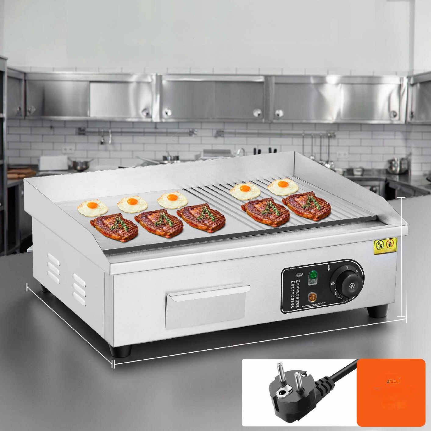 Температурный диапазон этого электрического коммерческого гриля составляет 50-300 ° C.