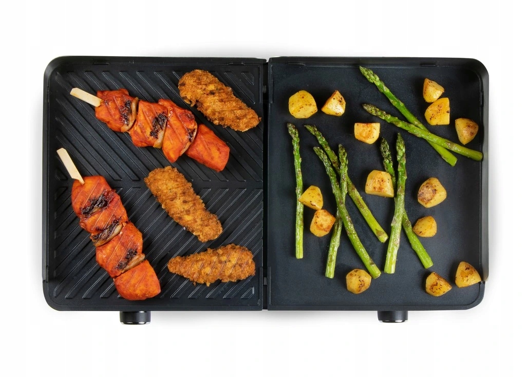 Electric Table Grill Универсальное использование дома на кухне и снаружи в саду. При жарке на открытом воздухе вы можете поставить на крышку против облигации, чтобы насладиться грилем даже в ветреную погоду. При эффективной теплопередаче также помогут нагревательные элементы, встроенные непосредственно в пластины для барбекю. Отдельное управление температурой поверхности гриля затем позволяет приготовить блюдо с ингредиентами, требующими различных температур гриля. Высококачественной нежилой поверхности достаточно после гриля просто с помощью бумажного полотенца или с большей грязью, вы можете легко удалить обе пластины и вымыть их в посудомоечной машине. Чтобы получить более постоянную грязь, вы не ходите в упаковку дополнительного специального скребка.
