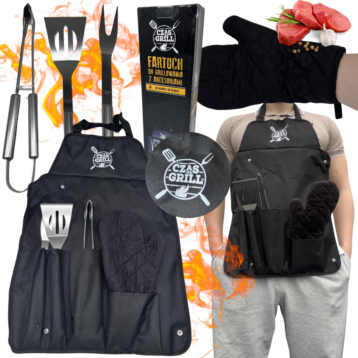 ФАРТУК GRILL MASTER С ИНСТРУМЕНТАМИ ДЛЯ ГРИЛЯ СТОЛОВЫЕ ПРИБОРЫ ГРИЛЬ 5 В 1