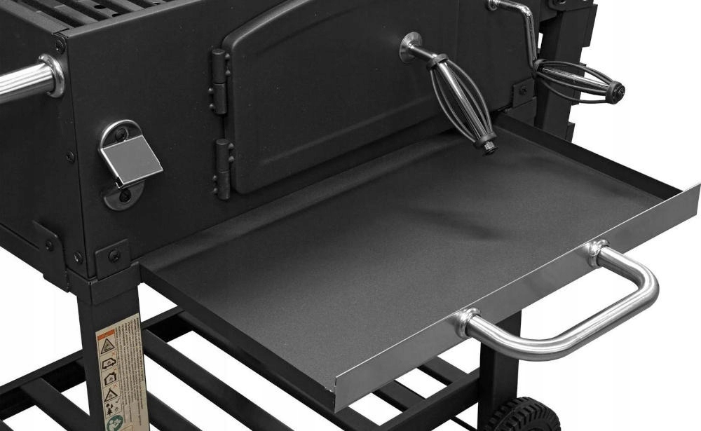 Перфорированная чаша для угля — позволяет легко подготовить угли для гриля. Гриль имеет механизм, который позволяет регулировать высоту топки с помощью рукоятки, помогая регулировать температуру блюд. Готовьте только на углях и брикетах.