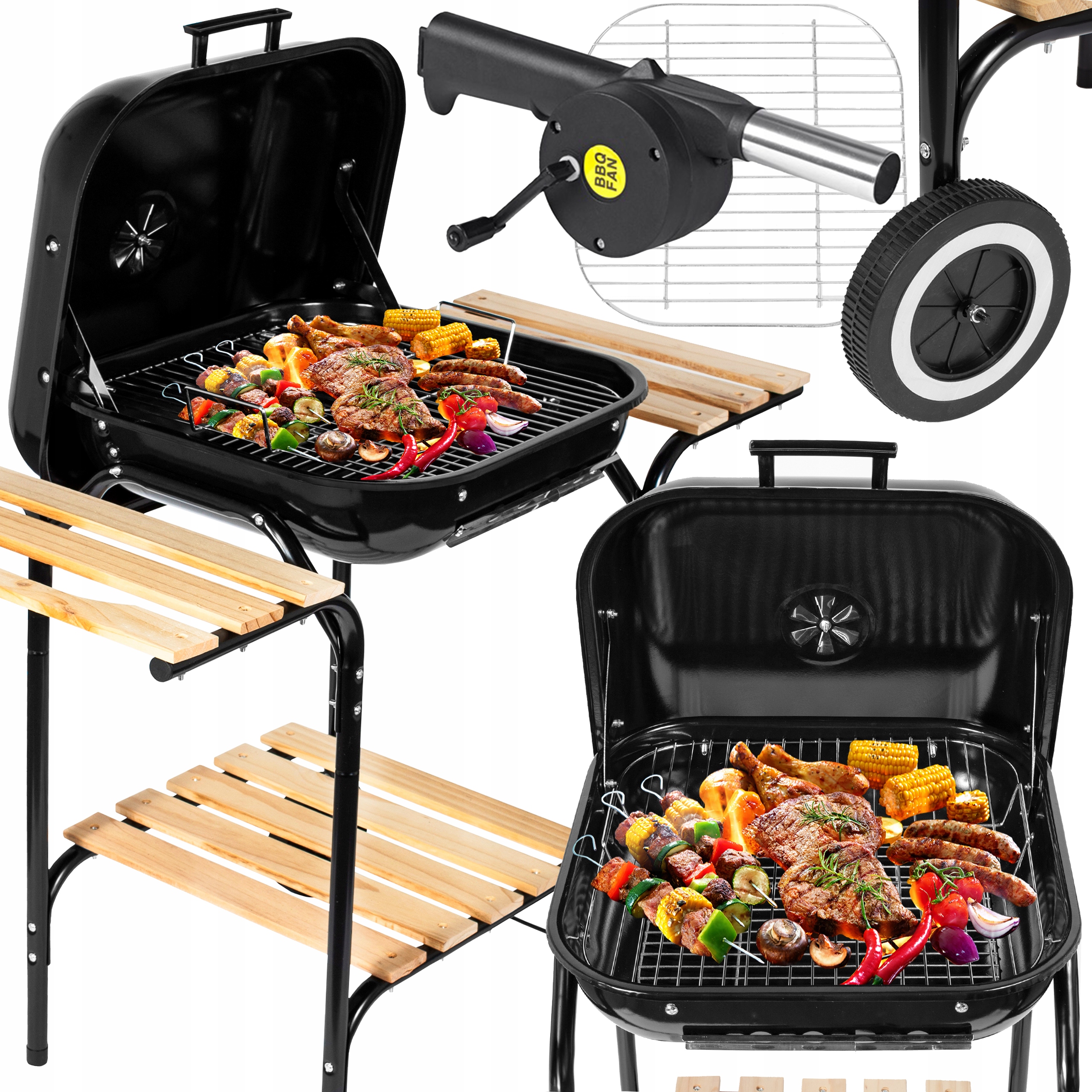 ЗАРЯДНОЙ ГРИЛЬ С КРЫШКОЙ САДОВАЯ БОЛЬШАЯ ХРОМИРОВАННАЯ РЕШЕТКА ПОЛКИ КОЛЕСА ВОЗДУХОДУВКА