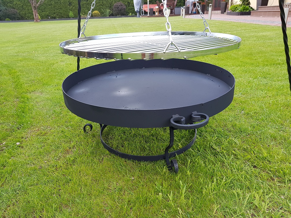 РЕШЕТКА ИМЕЕТ ЦЕПЬ, КОТОРАЯ ПОЗВОЛЯЕТ РЕГУЛИРОВАТЬ ВЫСОТУ ОТ ПЕЧИ ИЛИ КОСТРА< /п>