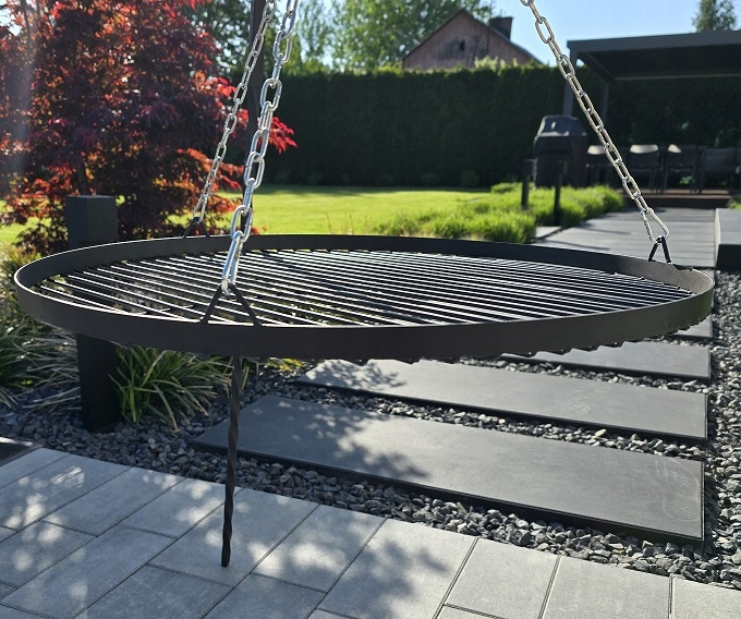 РЕШЕТКА ИМЕЕТ ЦЕПЬ, ПОЗВОЛЯЮЩАЯ РЕГУЛИРОВАТЬ ВЫСОТУ ОТ ПЕЧИ ИЛИ КОСТРА