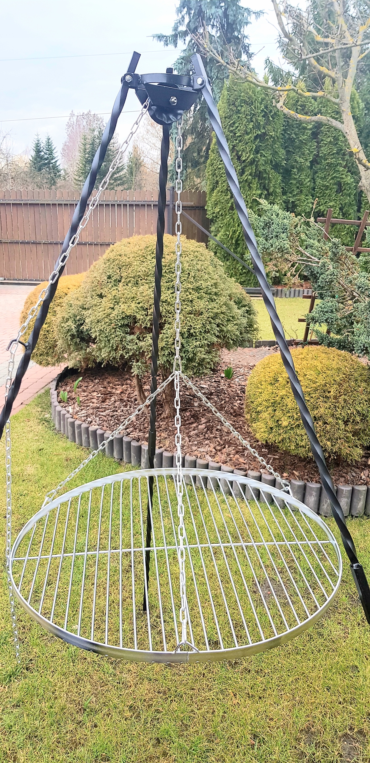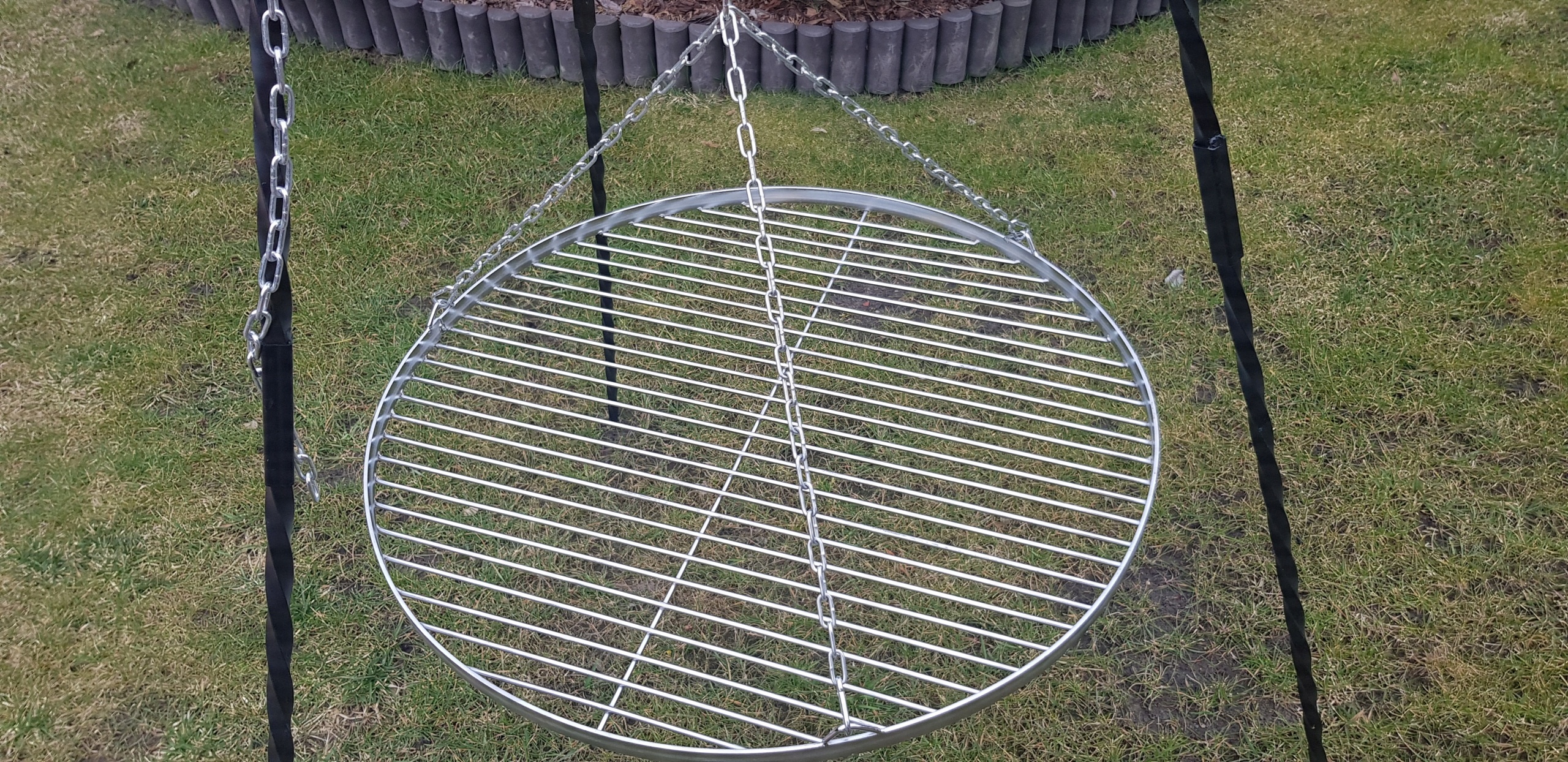 ГРИЛЬ НА ТРЕХ НОЖКАХ 190 СМ + ХРОМИРОВАННАЯ РЕШЕТКА 60 СМ