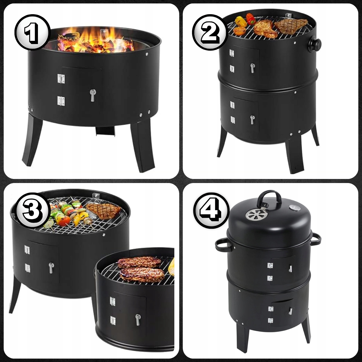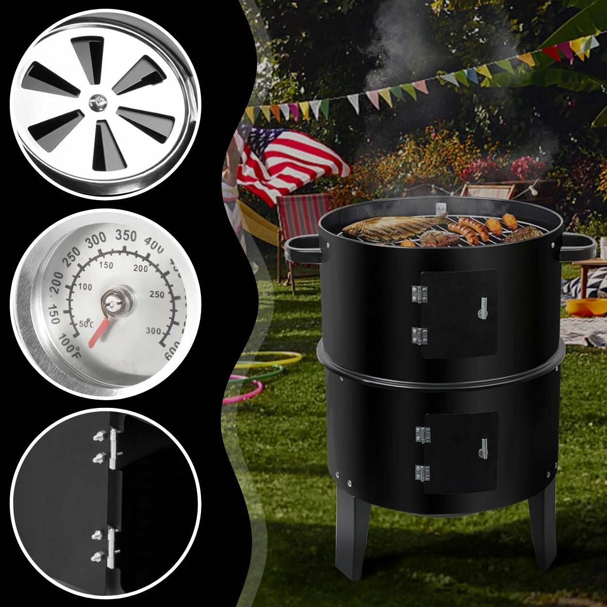 ✅Две дверцы для облегчения доступа: Два отдельных входа обеспечивают легкий доступ к внутренней части гриля без необходимости разбирать всю конструкцию. , что особенно полезно при длительном копчении или когда нужно добавить больше угля или дров.