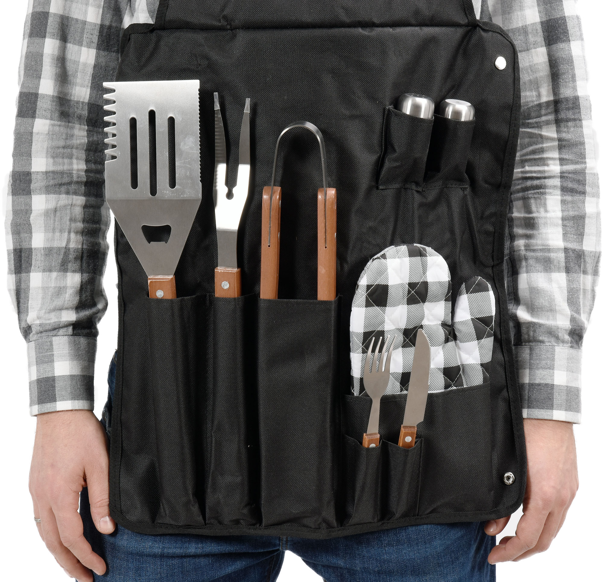 Незаменимый набор для всех любителей барбекю. В специально разработанном фартуке всегда под рукой, а при хранении фартука служит a Cover .