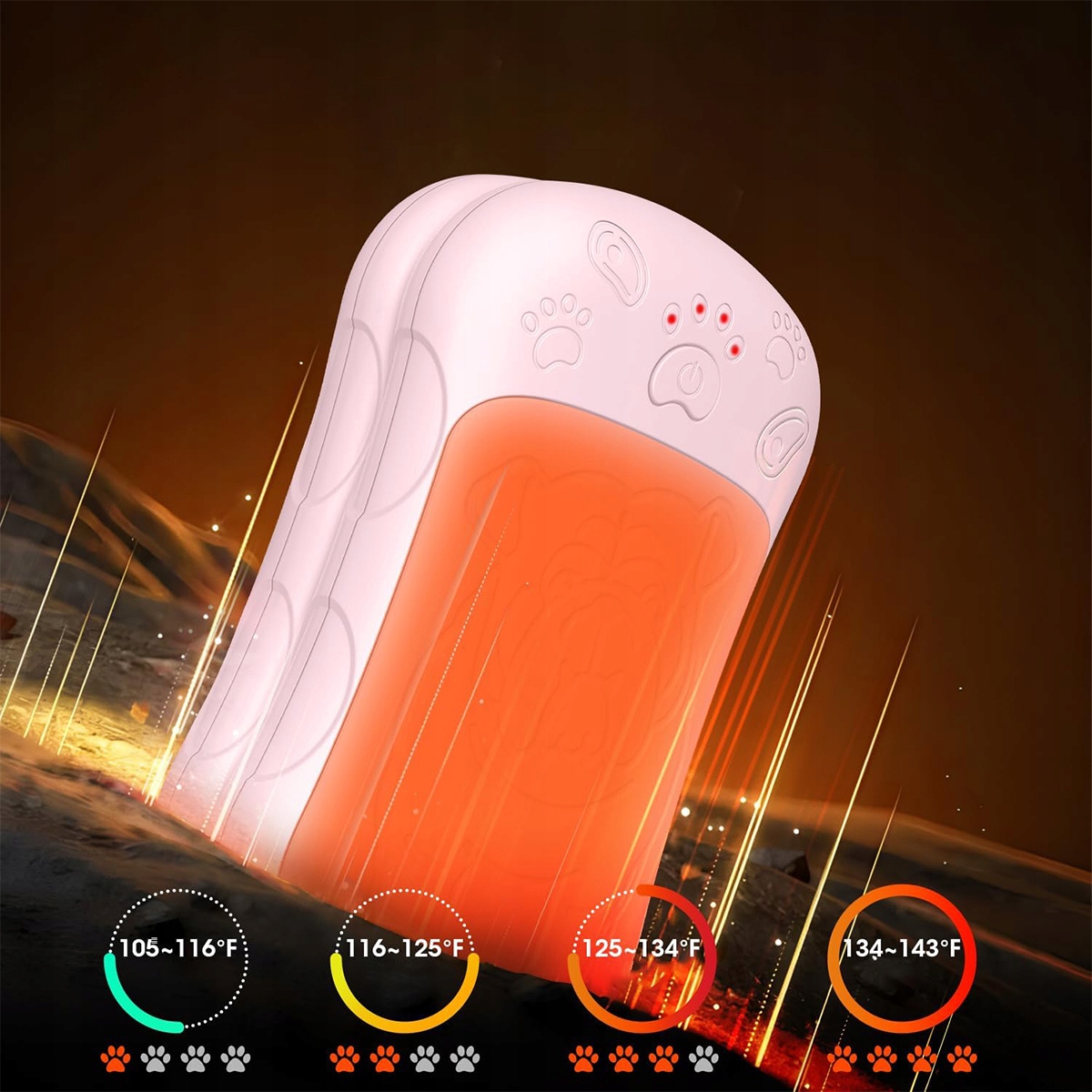 🔥【Мгновенный разогрев за 3 секунды, 4 уровня нагрева】Эти многоразовые грелки для рук доставляют тепло всего за 3 секунды, обеспечивая двустороннее тепло от приятного тепла до высокой рабочей температуры 62°C, а встроенные 4 уровня нагрева обеспечивают регулируемое, точное, стабильное и комфортное тепло. Четыре индикатора интуитивно информируют вас об уровне заряда аккумулятора (синий) и состоянии нагрева (красный).