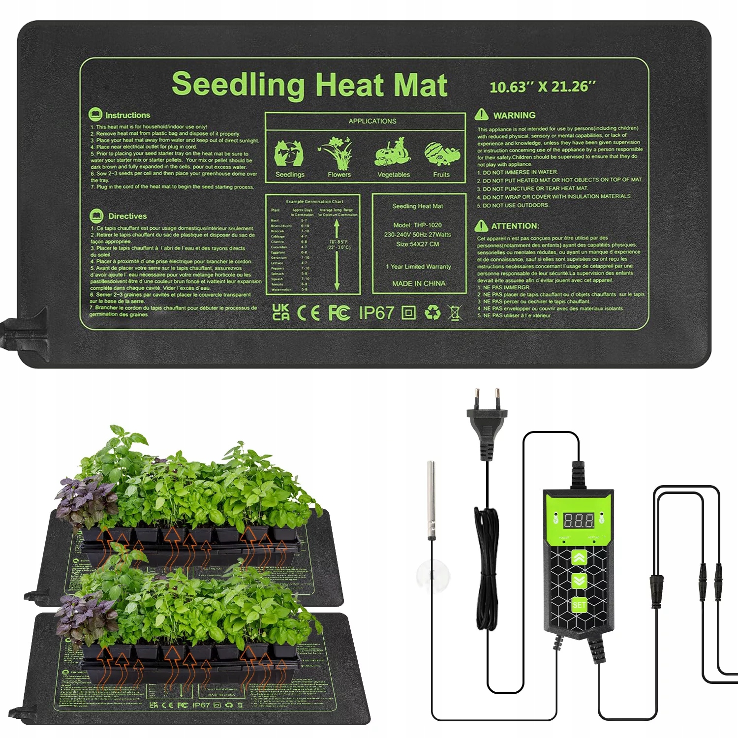 ⭐ГРЕЛКА ДЛЯ РАСТЕНИЙ С ТЕРМОСТАТОМ, ВОДОНЕПРОНИЦАЕМАЯ ГРЕЛКА IP67, 27 Вт ГРЕЛКА С ФУНКЦИЕЙ ТАЙМЕРА, ГРЕЛКА ДЛЯ КОМНАТНОЙ ТЕПЛИЦЫ ДЛЯ ПРОСЕМИНИРОВАНИЯ ПОСЕВА, ГАД (55Х27 СМ)⭐
