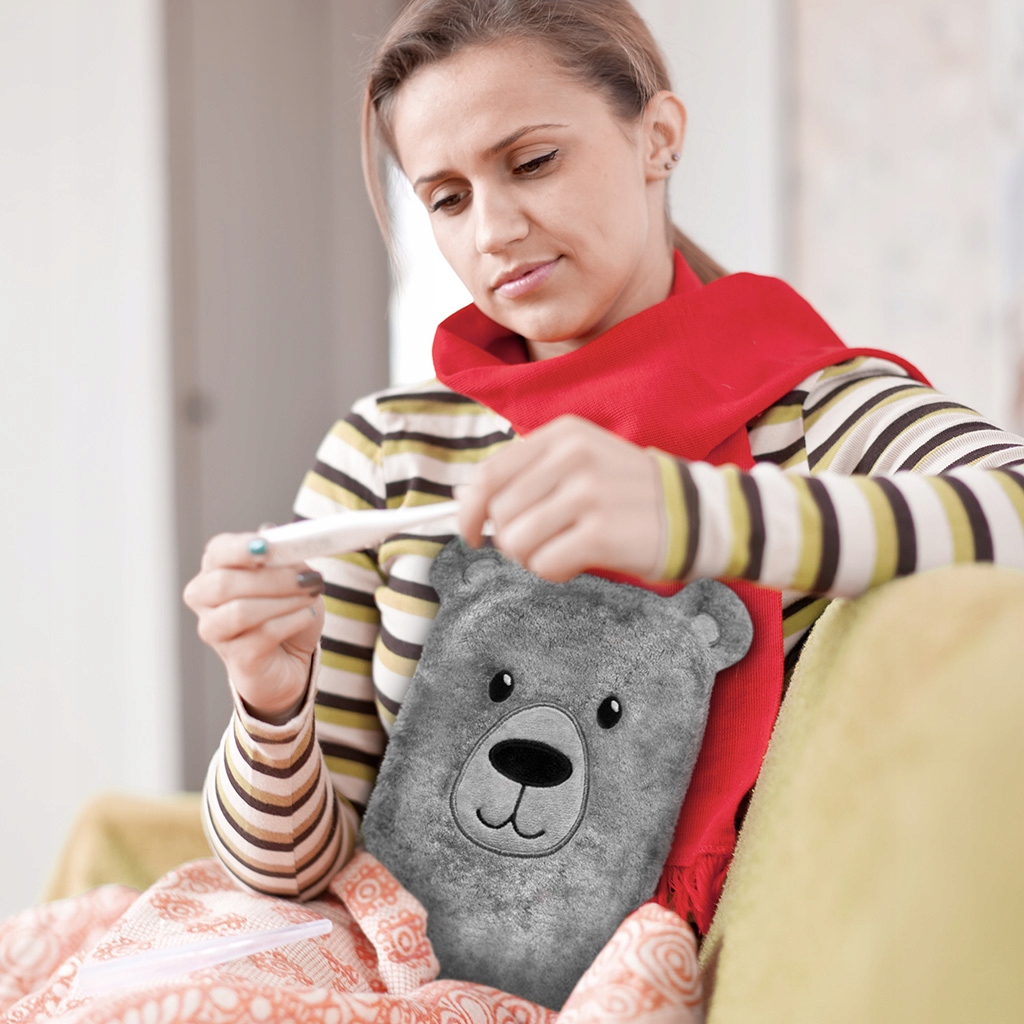 Резиновая бутылочка, спрятанная в плюшевом чехле, прекрасно согреет вас в холодные дни, а также облегчит боль.