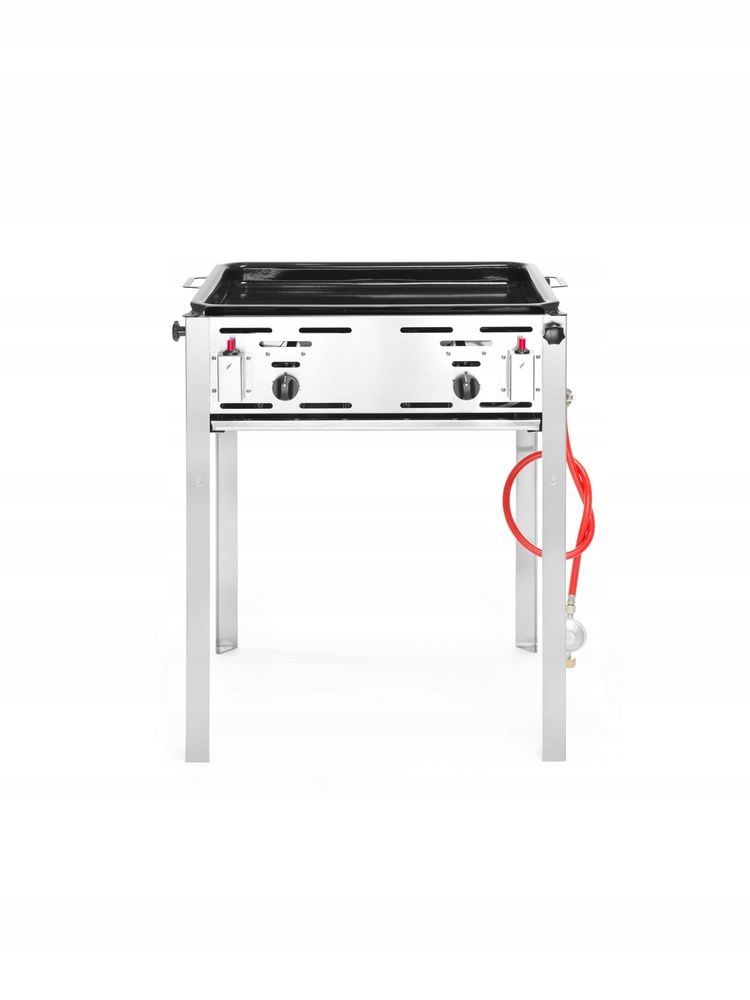 - Две газовые горелки с независимым управлением , электронное зажигание, газовая трубка с редуктором,