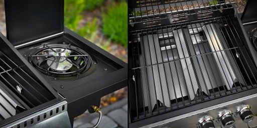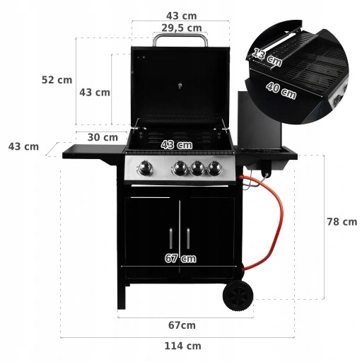 Этот гриль был создан с учетом безопасности и комфорта использования. Он оснащен встроенным термометром, позволяющим контролировать температуру приготовления, идеей для хранения аксессуаров, дополнительной полкой для аксессуаров и прочными колесами, облегчающими транспортировку устройства.