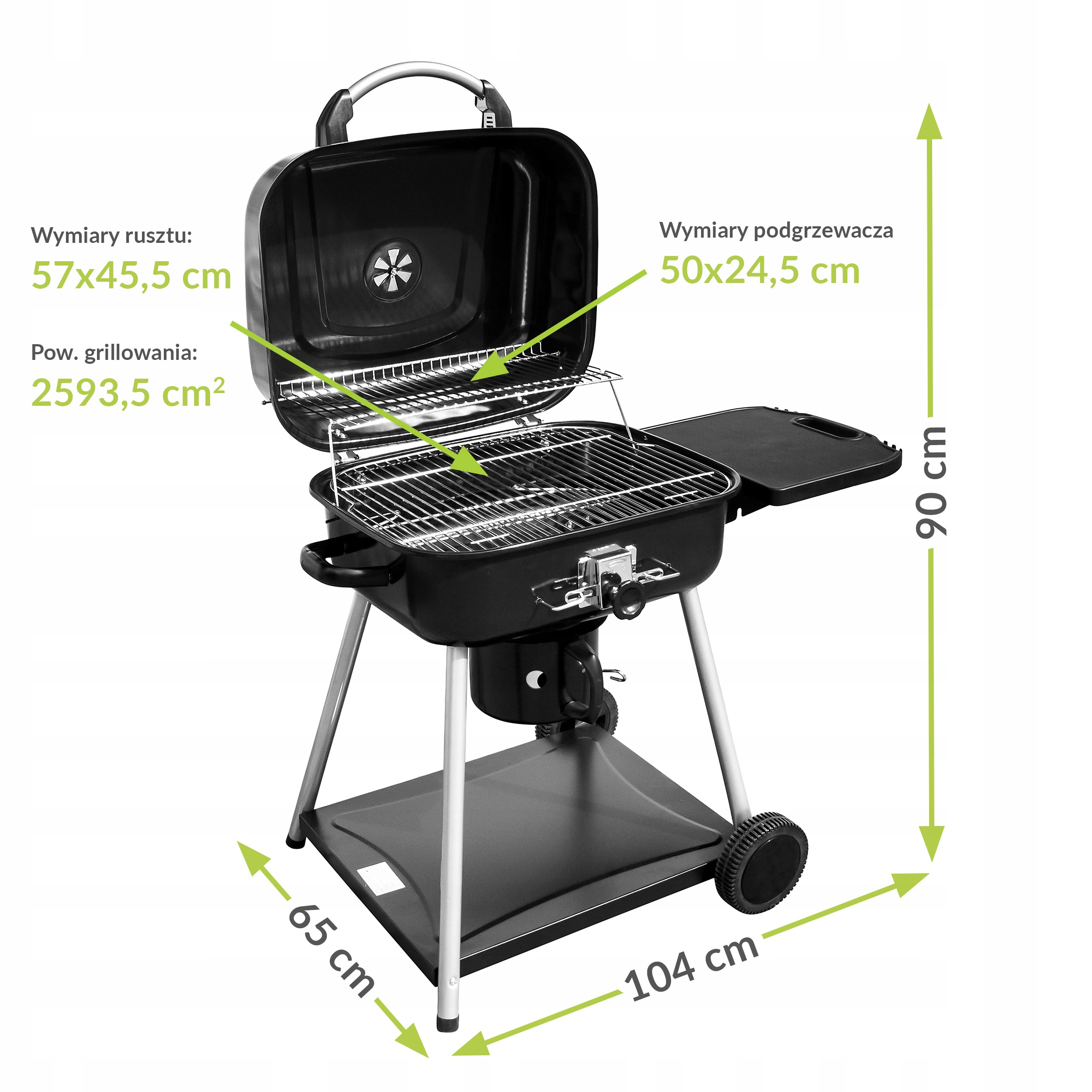 Grill węglowy ogrodowy duży przenośny Pokrywa półki kółka transportowe