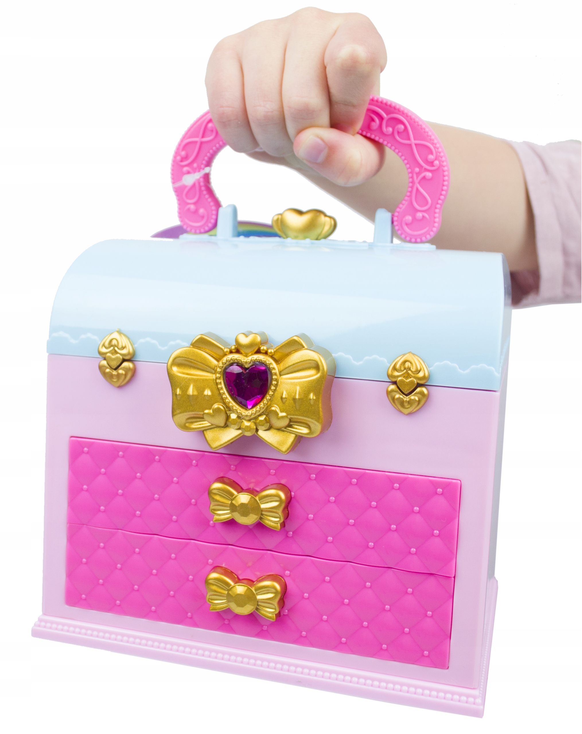 Каждая маленькая девочка хочет подражать своим родителям в повседневных делах, в том числе маме, бабушке, тете... Это станет прекрасным подарком для каждого девушка, которая увлекается макияжом. В собранном виде он будет прекрасно смотреться на туалетном столике любой девушки. Чемодан имеет удобную ручку и практичен, поэтому его можно брать с собой на встречи с друзьями или в семейные поездки. Он выглядит уникально и профессионально.