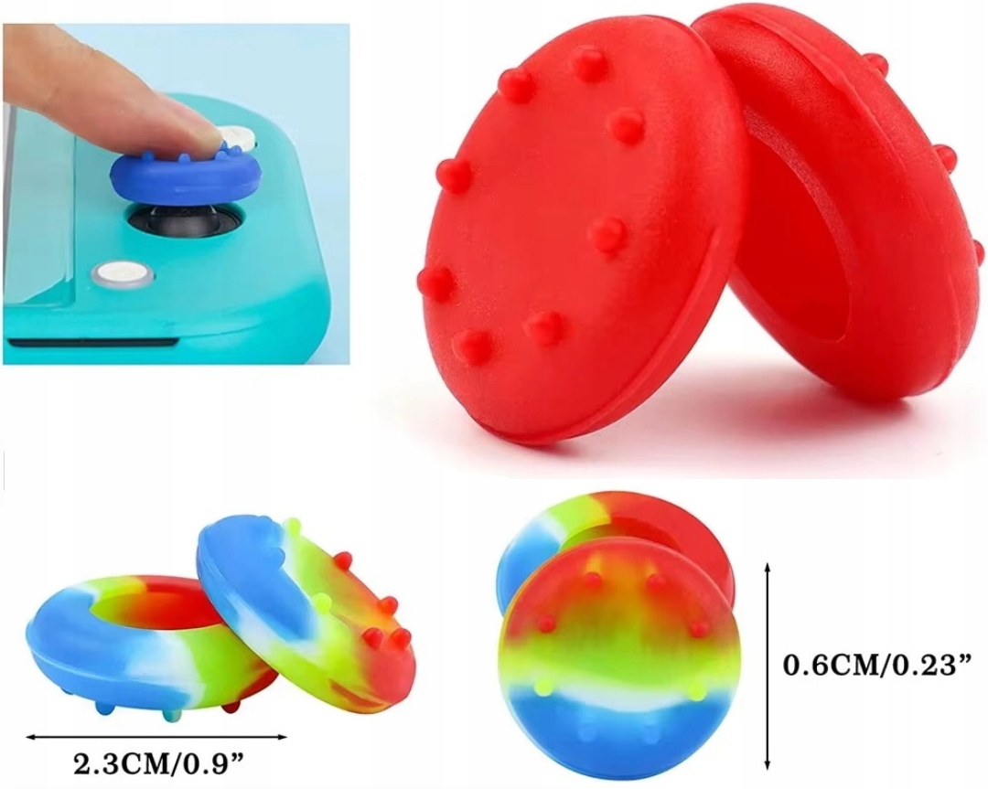 Накладки имеют шипы (8 штук), которые предотвращают скольжение пальца во время игры. Защищают чувствительные элементы (аналоги грибов). Они изготовлены из силиконовой резины (ТПУ). Накладки должны быть установлены на неповрежденные (не изношенные) грибочки!