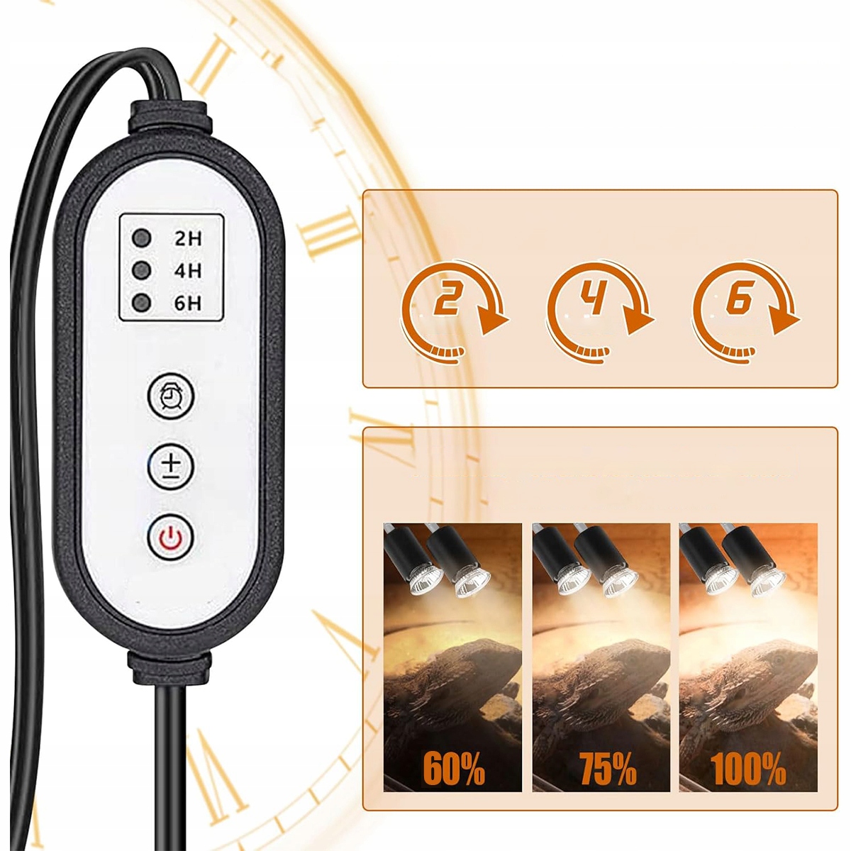 Эта тепловая лампа в форме рептилии с двумя головками имеет интеллектуальный временной цикл. Доступны три настройки времени (2 часа, 4 часа, 6 часов) для удовлетворения потребностей в обогреве различных животных. Лампу можно включать и выключать в одно и то же время каждый день с помощью однократной настройки. Он включается автоматически 24 часа в сутки, без необходимости выключать его вручную, что удобно и экономит время.