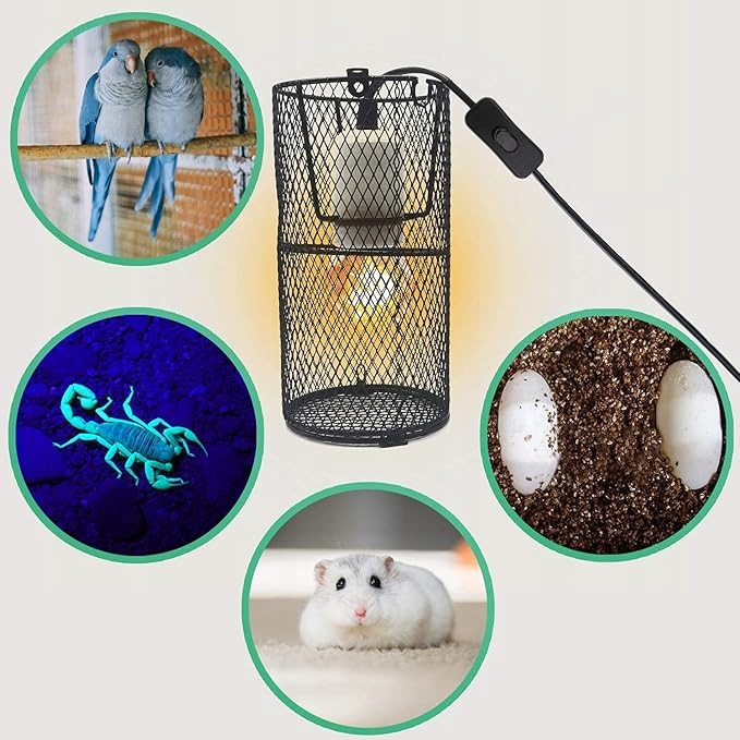 🕊️Материал: Защитная корзина нагревательной лампы изготовлена из железа. Керамическая лампа Е27 изготовлена из никель-хромовой проволоки и обладает антиокислительными, сейсмостойкостью, безопасностью и гигиеничностью. Высококачественный сплошной круглый забор для домашних животных, подходящий для черепах, бородатых драконов, змей и других домашних животных.