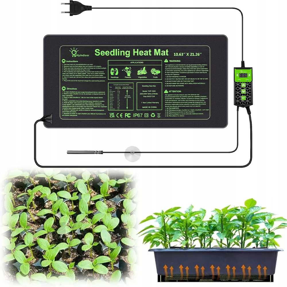 ⭐ГРЕЛКА ДЛЯ РАСТЕНИЙ С ТЕРМОСТАТОМ, ВОДОНЕПРОНИЦАЕМАЯ ГРЕЛКА IP67, 27 Вт ГРЕЛКА С ФУНКЦИЕЙ ТАЙМЕРА, ГРЕЛКА ДЛЯ КОМНАТНОЙ ТЕПЛИЦЫ ДЛЯ ПРОМЫШЛЕННЫХ ПОСЕВОВ, ГАД (55Х27 СМ)⭐
