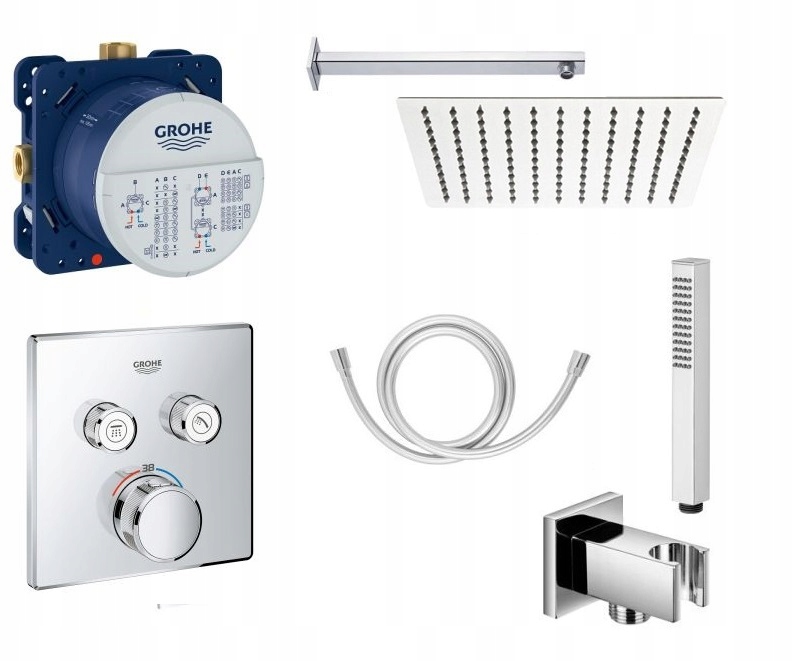 Grohe SmartControl/Omnires полный душевой комплект скрытого монтажа + тропический душ Estiva 30 см
