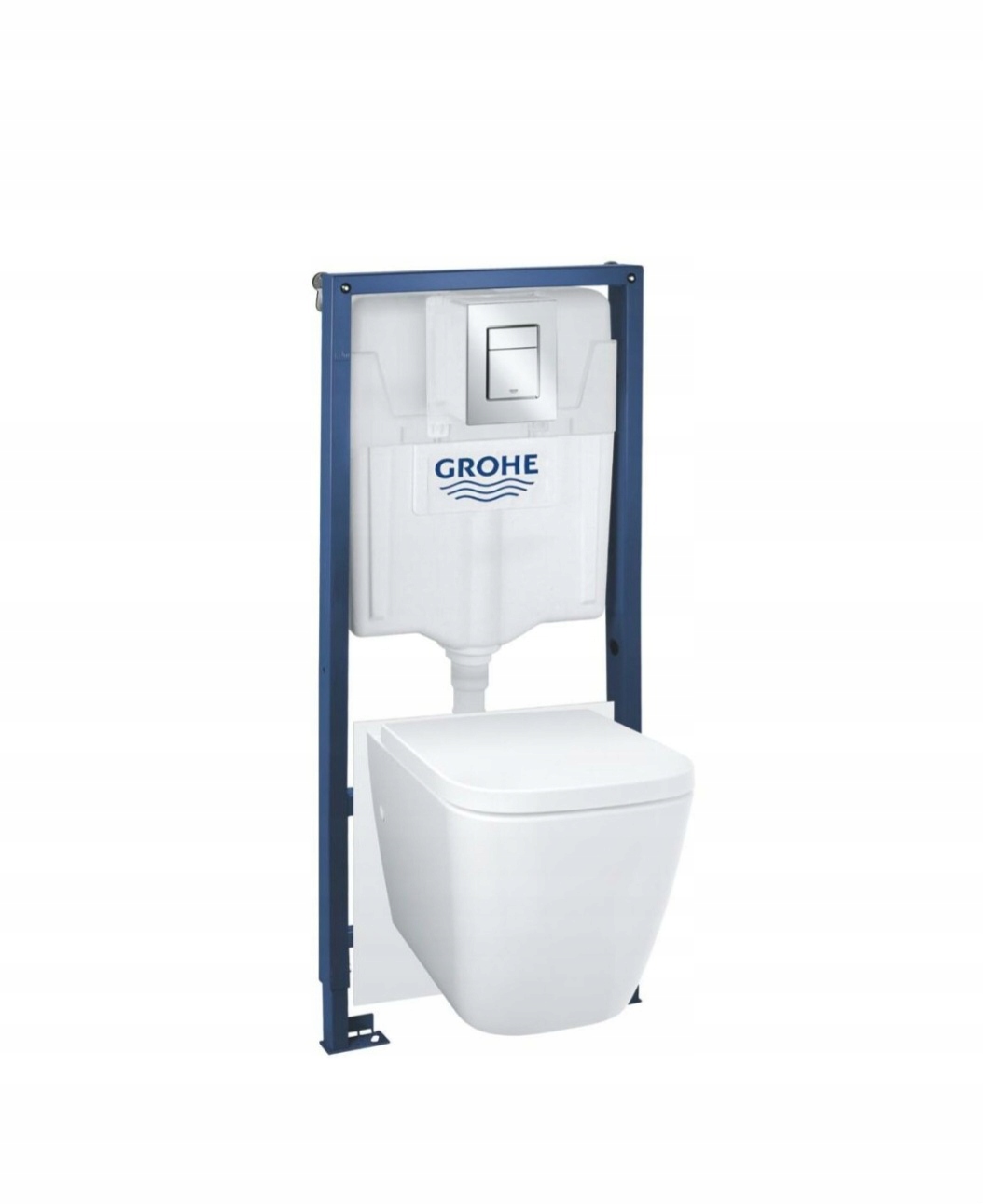 ПОЛНЫЙ КОМПЛЕКТ БЕТОННОГО УНИТАЗА GROHE SOLIDO С ХРОМИРОВАННОЙ КНОПКОЙ И ПОДВЕСНОЙ ЧАШЕЙ GROHE С МЕДЛЕННО ЗАКРЫВАЮЩИМСЯ СИДЕНЬЕМ из ДЮРОПЛАСТА< /б>< /п>