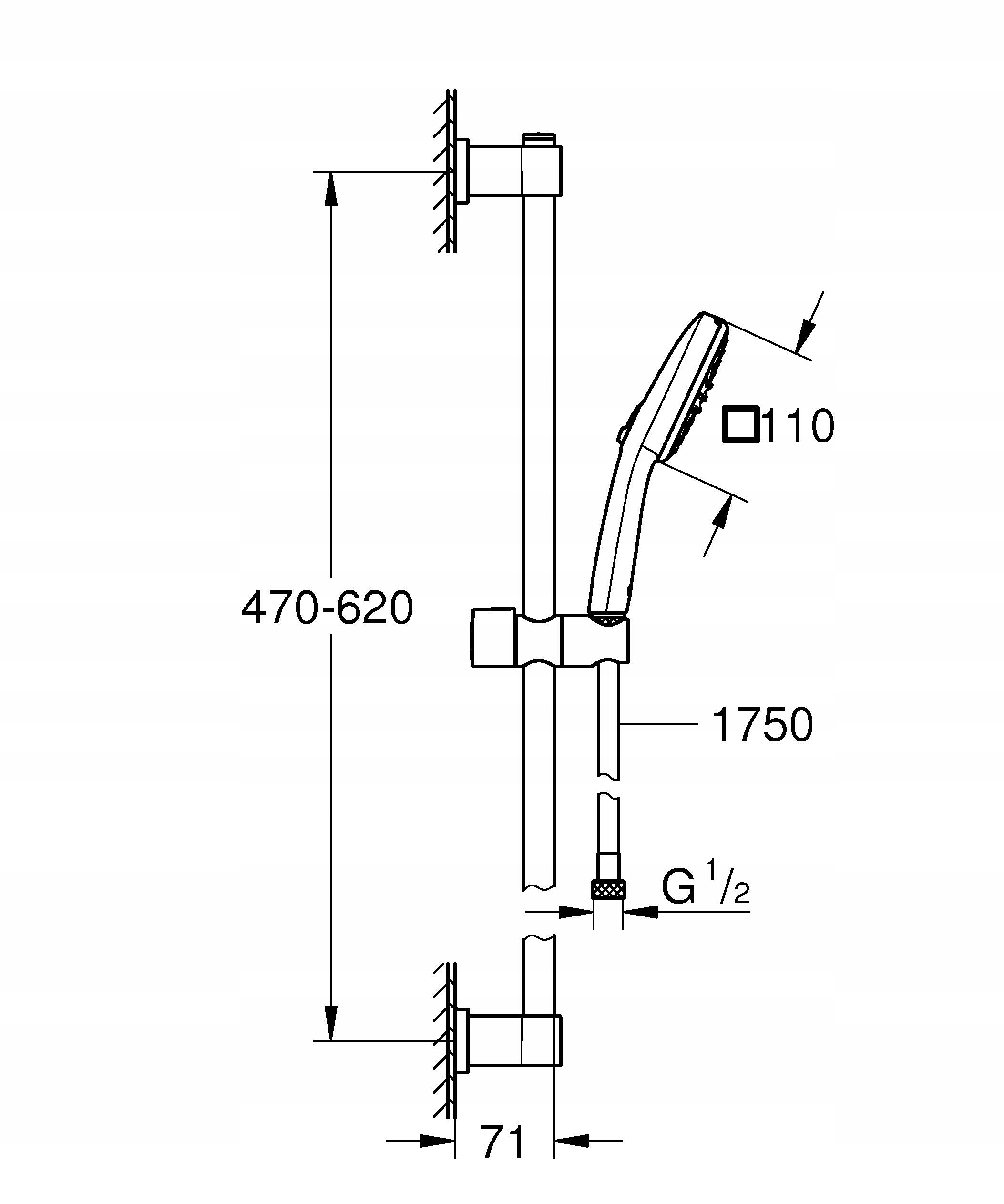 Душевой набор со штангой 600 мм GROHE Vitalio Comfort 110, 2 струи