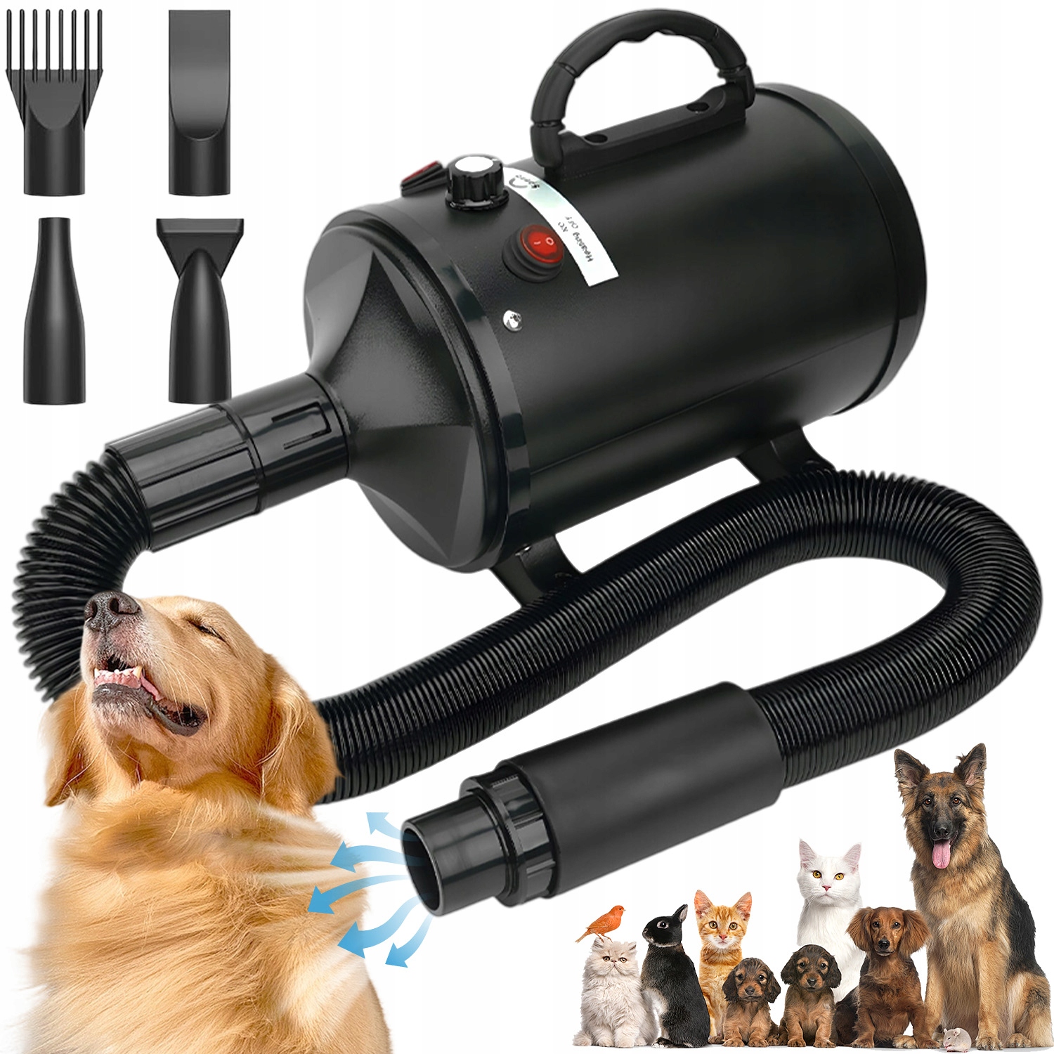 🐕🐈ПРОФЕССИОНАЛЬНАЯ СУШИЛКА ДЛЯ СОБАК И КОШЕК, РЕГУЛИРУЕМАЯ СКОРОСТЬ И ТЕМПЕРАТУРА, БЕСШУМНАЯ сушилка для ухода за собаками с 4 НАСАДКАМИ ДЛЯ ДОМАШНЕГО И ПРОФЕССИОНАЛЬНОГО ИСПОЛЬЗОВАНИЯ (ЧЕРНАЯ)🐕🐈