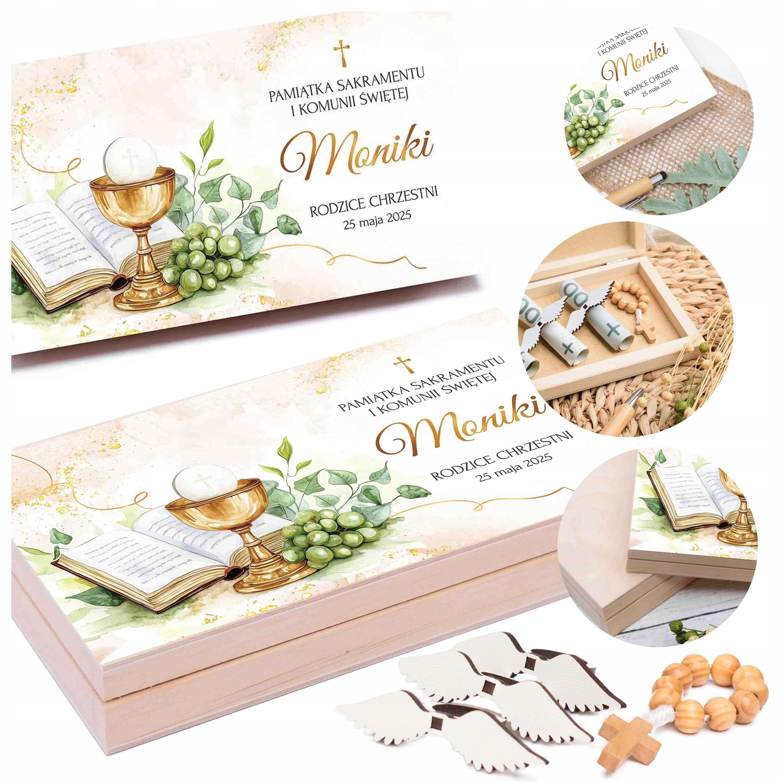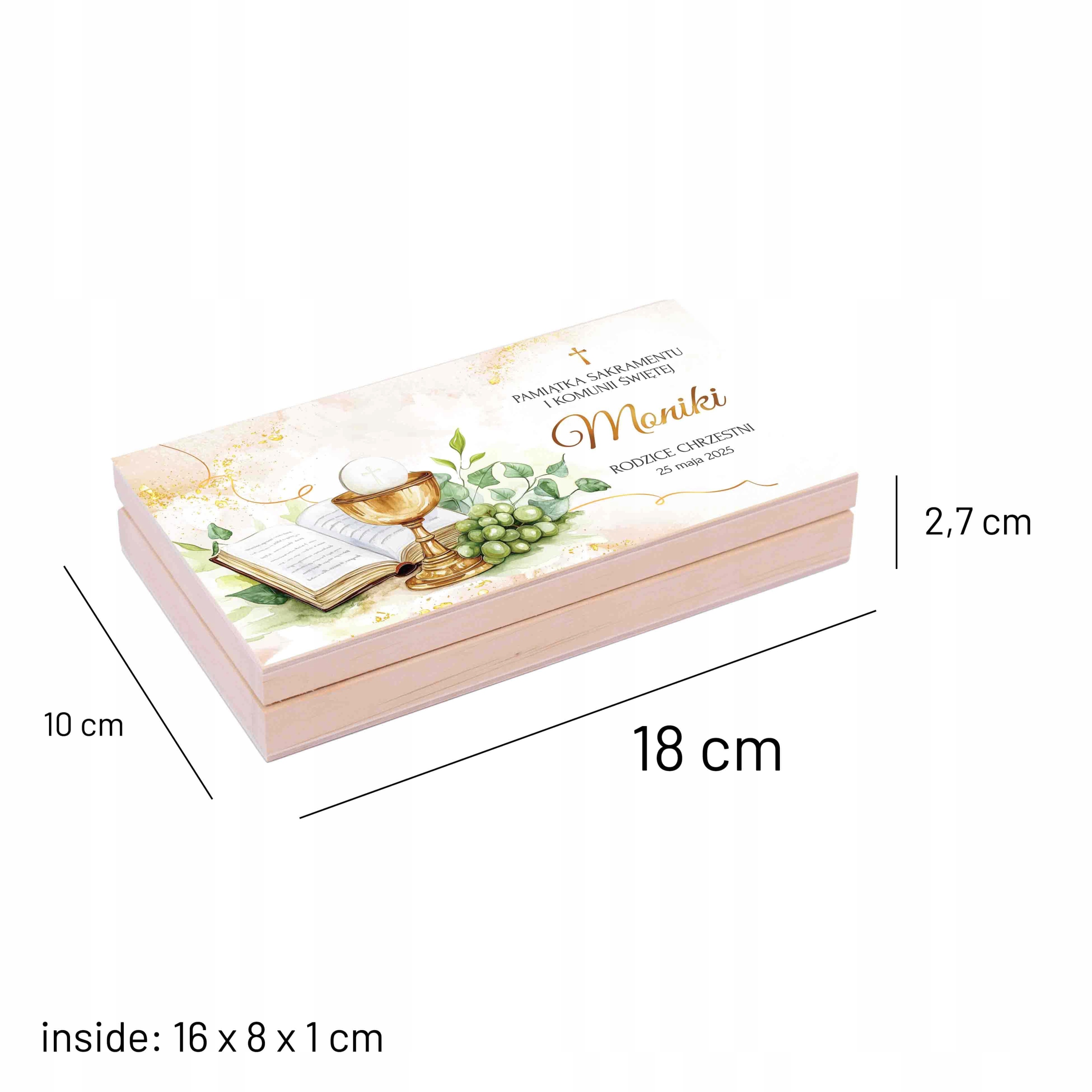 Вам интересно, что купить по случаю первого святого причастия? Если вы хотите, чтобы ваш подарок был как практичным, так и оригинальным, выберите нашу деревянную коробку для розария и деньги. Это отличный выбор, который сочетает в себе функциональность с элегантным дизайном, идеально подходящим для любого интерьера. Такой подарок не только облегчит присуждение этого уникального подарка, но и добавит небольшое очарование пространства. Идеальный способ выразить уважение в этот важный день!