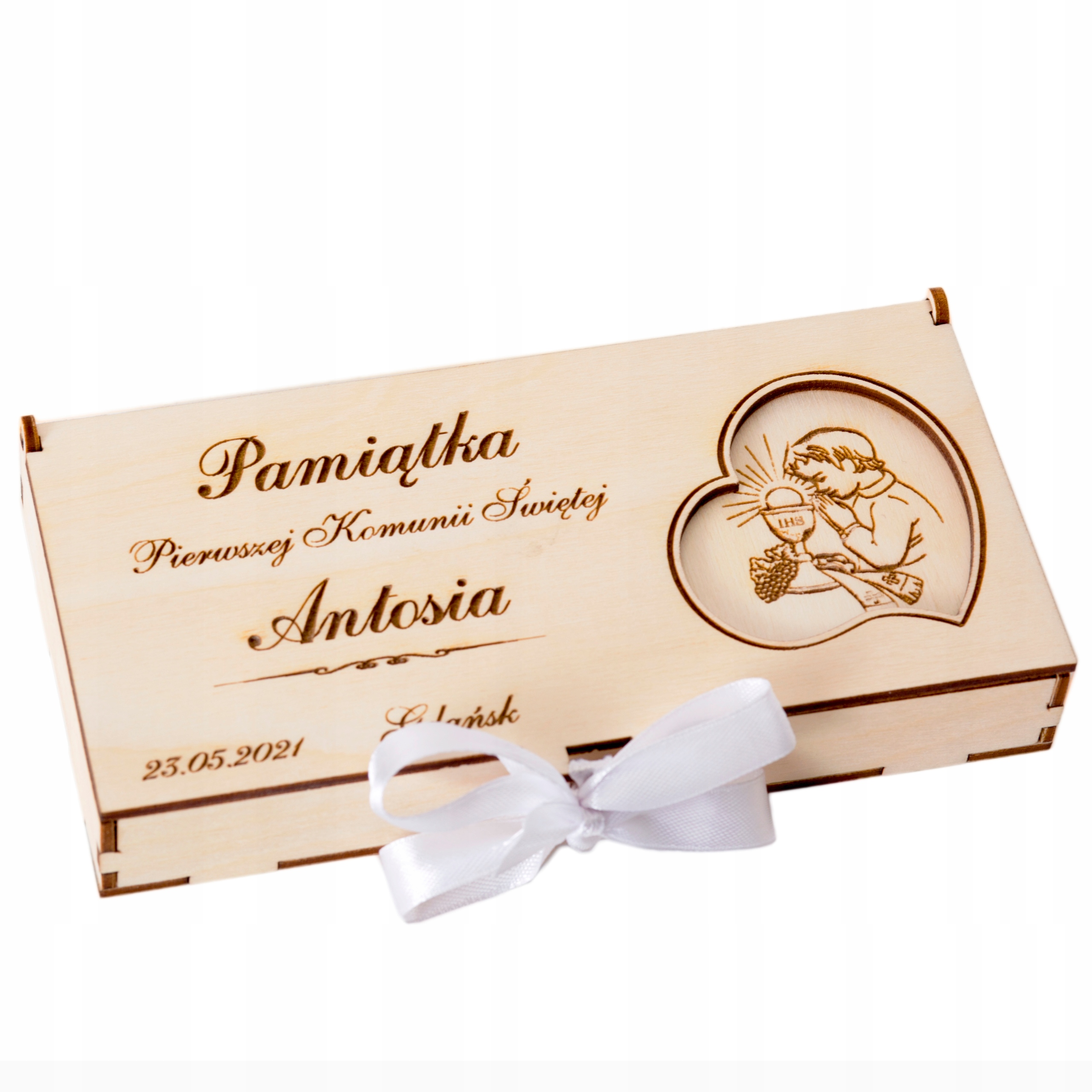 Шкатулка с индивидуальной гравировкой для денег в подарок к первому причастию
