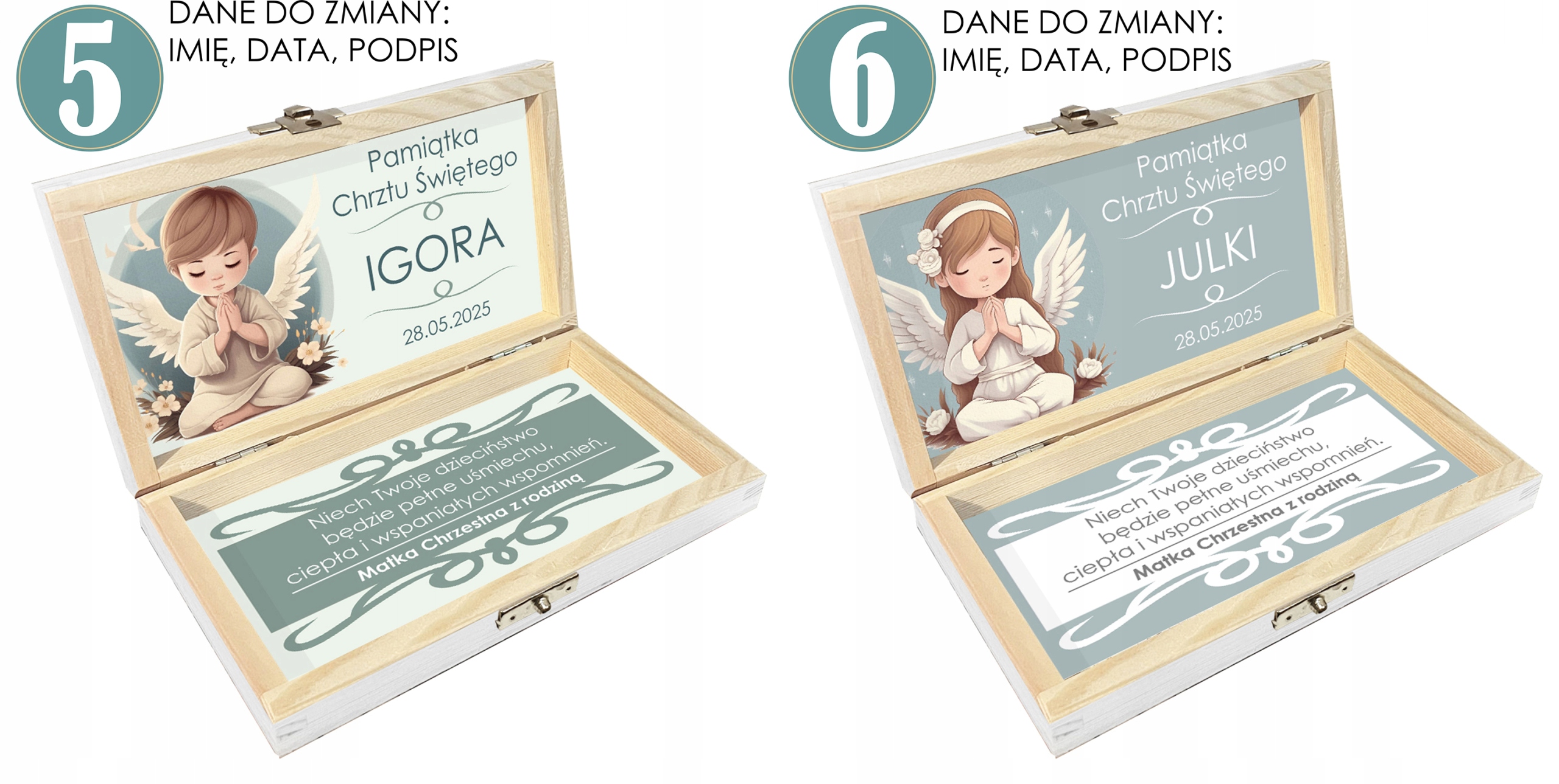 Изготовлен из натуральной древесины, коробка имеет точно сделан гравюр и название ребенка . Внутри есть место для банкнот или подарочный ваучер, и все выглядит чрезвычайно торжественным и эстетически.